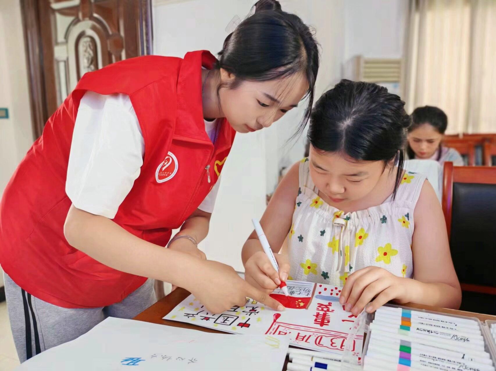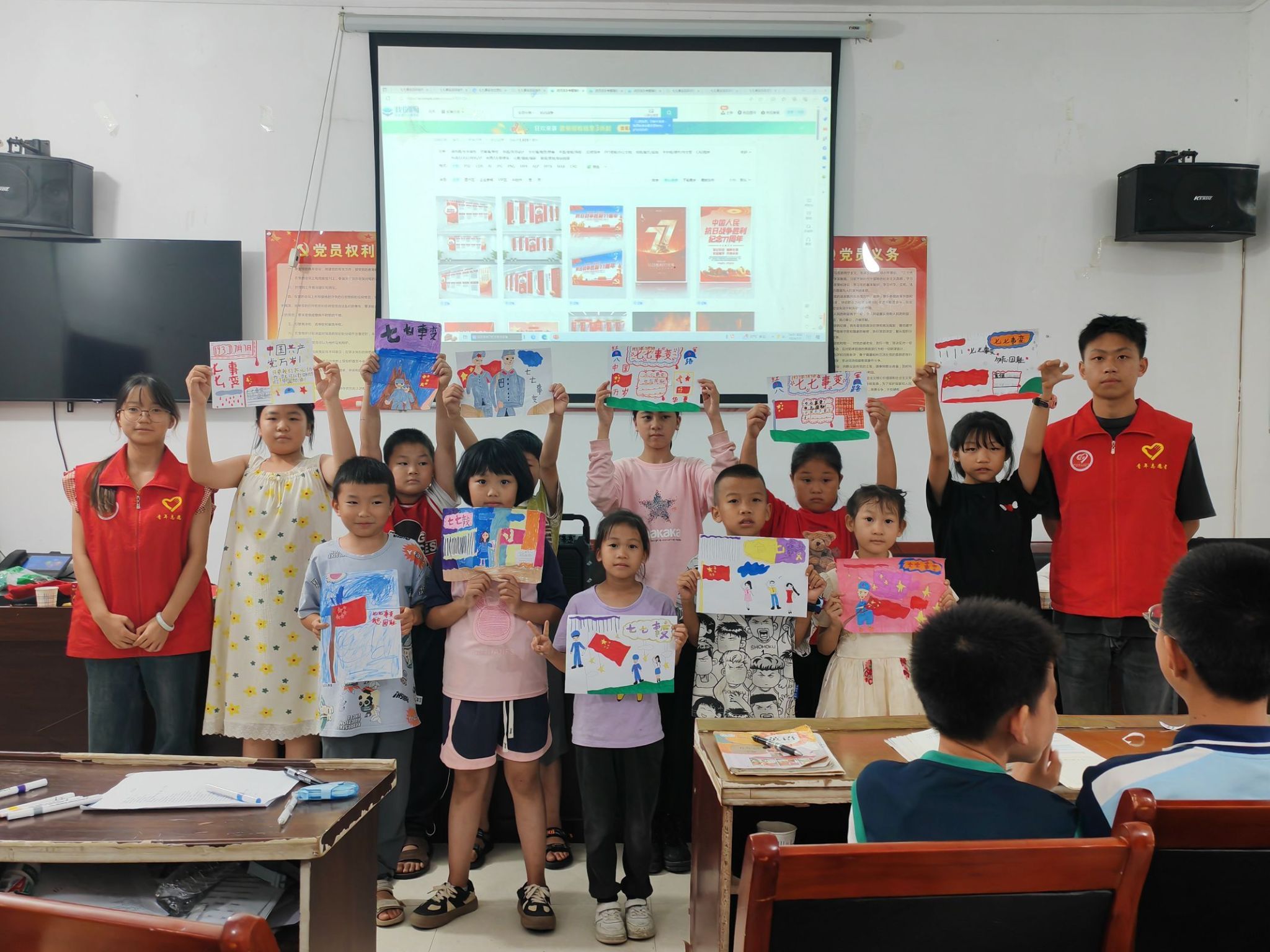 七月七日,历史铭记。志愿者们以“七七事变”为引,带青少年穿越时光,爱国之情如江河滋养心间。在讲述中,一颗颗爱国种子悄然播种,于幼小心灵生根发芽。小朋友们手握五彩斑斓的画笔,将内心的感动与对英雄的敬仰,化作一幅幅生动鲜活的画卷,这些画作,不仅串联起他们对祖国的深情厚爱,更成为铭记历史、传承精神的桥梁。