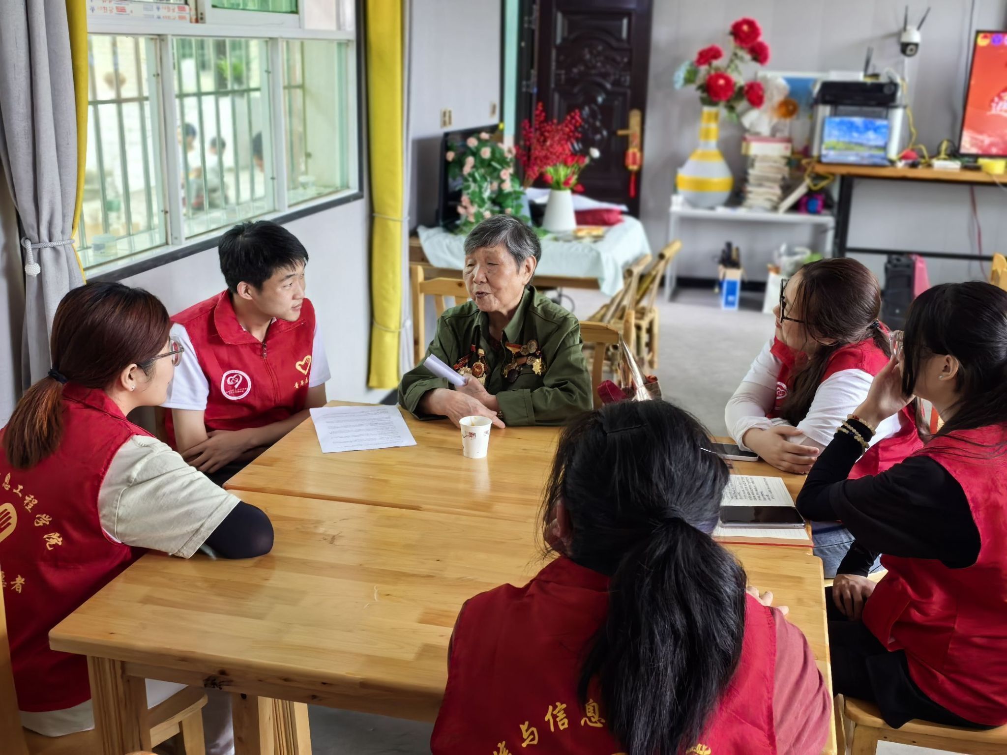 为进一步传承老一辈革命精神,引领新时代青年在乡村振兴实践中弘扬红色文化,以红色精神铸魂乡村振兴,推动乡村振兴迈向新的征程。2024年7月7日,重庆移通学院通信与信息工程学院“青聚双凤 通力前行”乡村振兴促进团于诚湘康养院会议室召开“学习红色故事 共建振兴新局面”主题分享会,旨在将这段不朽的历史与新时代乡村振兴紧密结合,为乡村发展注入全新活力。此次会议特邀请:段贤能、汪重民、余中华三位原抗美援朝战士进行分享。
