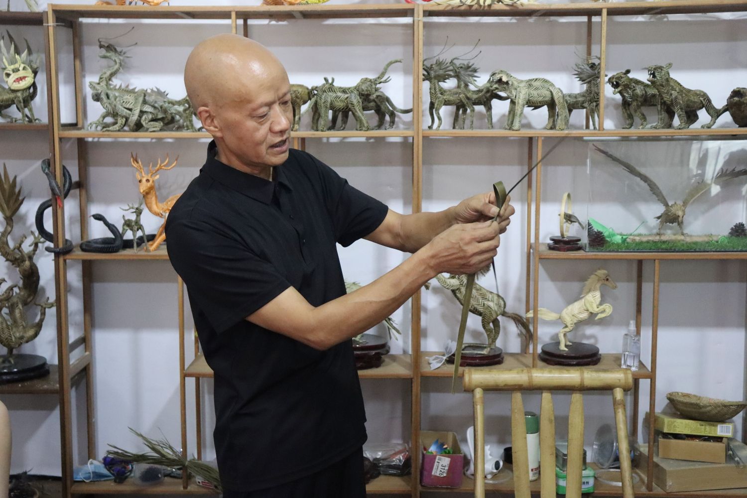 队员们沿着老街的石板路前行,两旁的古建筑仿佛在诉说着过去的故事。在老街的深处,志愿者们终于找到了棕编艺术的传承之所,一扇木门后,隐藏着一个充满魅力的棕编世界。