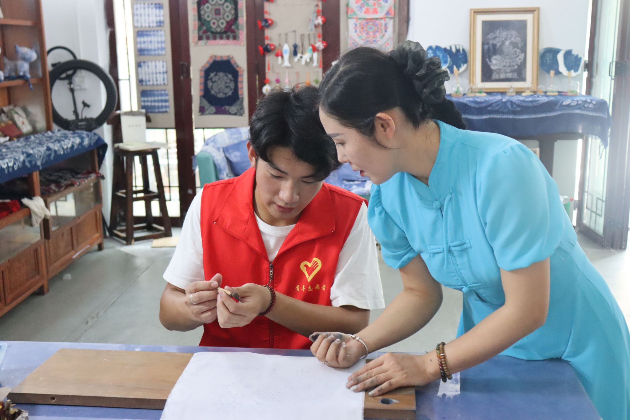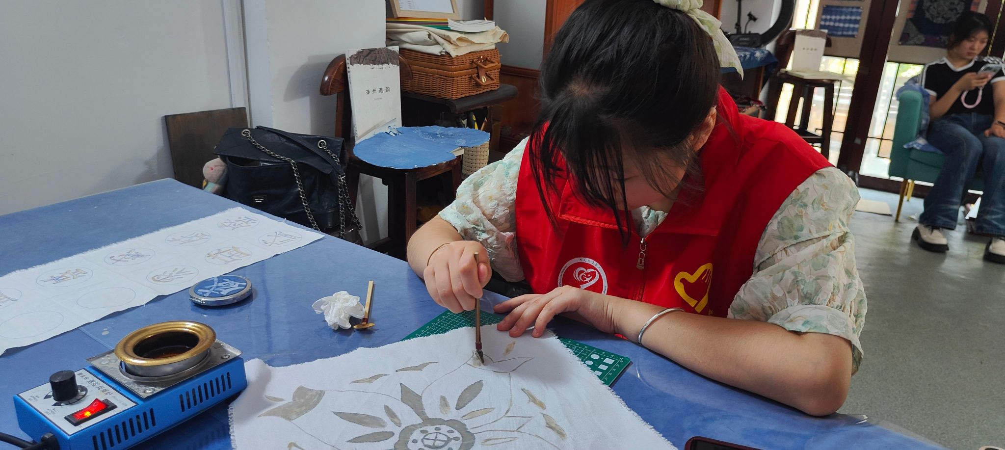 在国家对传统文化高度重视和大力支持的浪潮下,非遗文化学习在全国各地如繁花盛开。2024年7月6日,“綦”遇老街文化艺术服务团积极投身传承传统文化的洪流,踏入诗缘坊开启“非遗文化—蜡染”的学习之旅。