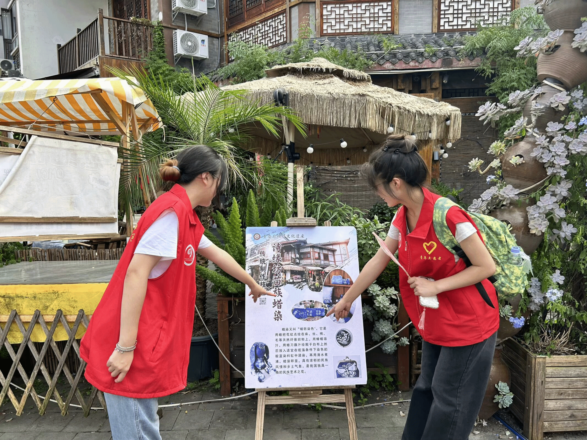 在制作漆扇活动结束后,志愿者们的脚步并未停歇,继续实地调研当地非遗文化特色。在万盛老街的石板路上,志愿者们看到了“巴渝棕编、火烧糯米酒、蜡染、扎染”等10余中非遗产业,切实感受到万盛老街的非遗文化魅力所在。此次调研不仅加深了志愿者们对非遗文化的理解,更激发了志愿者们传承与保护非遗文化的热情与责任。