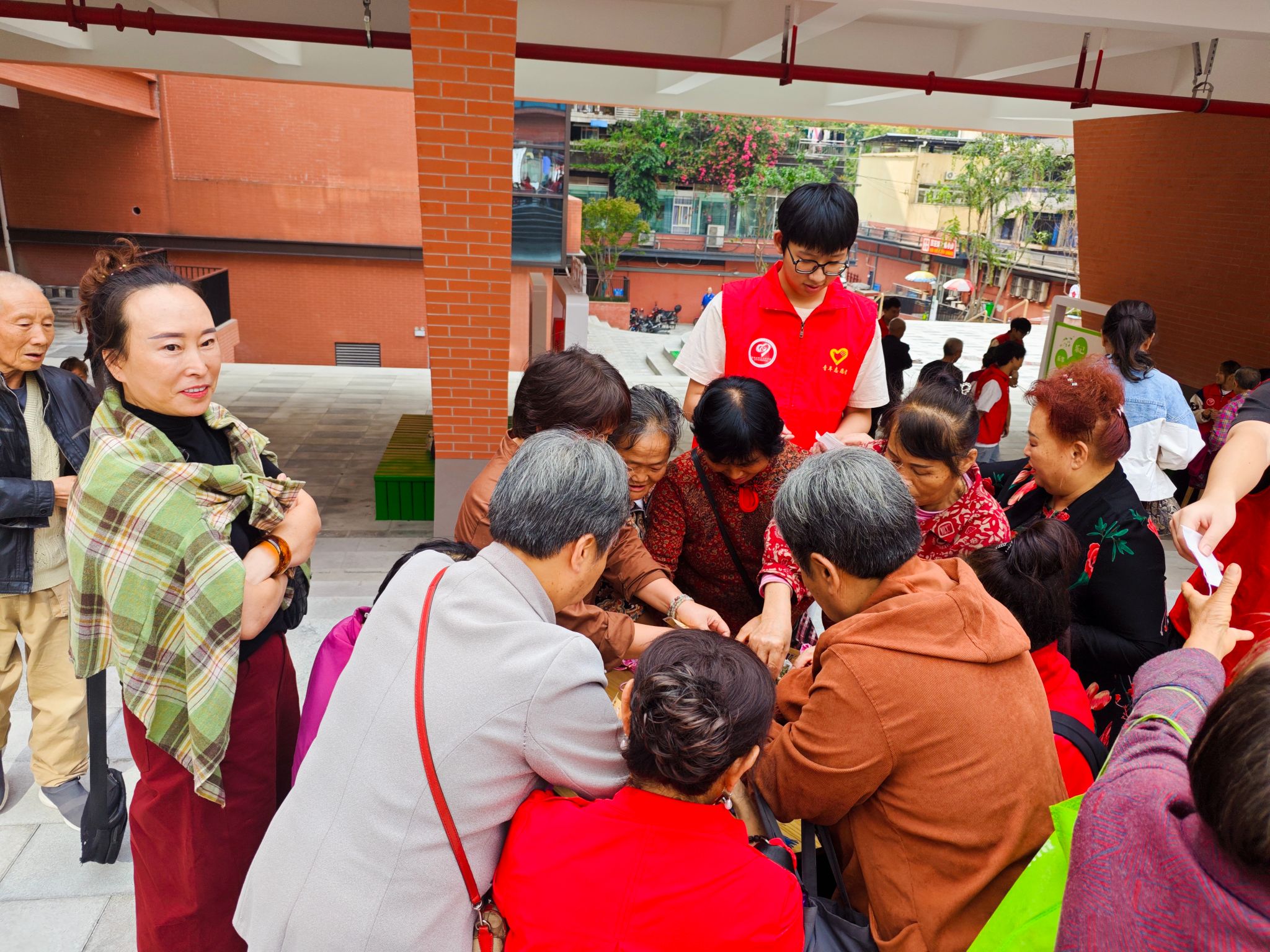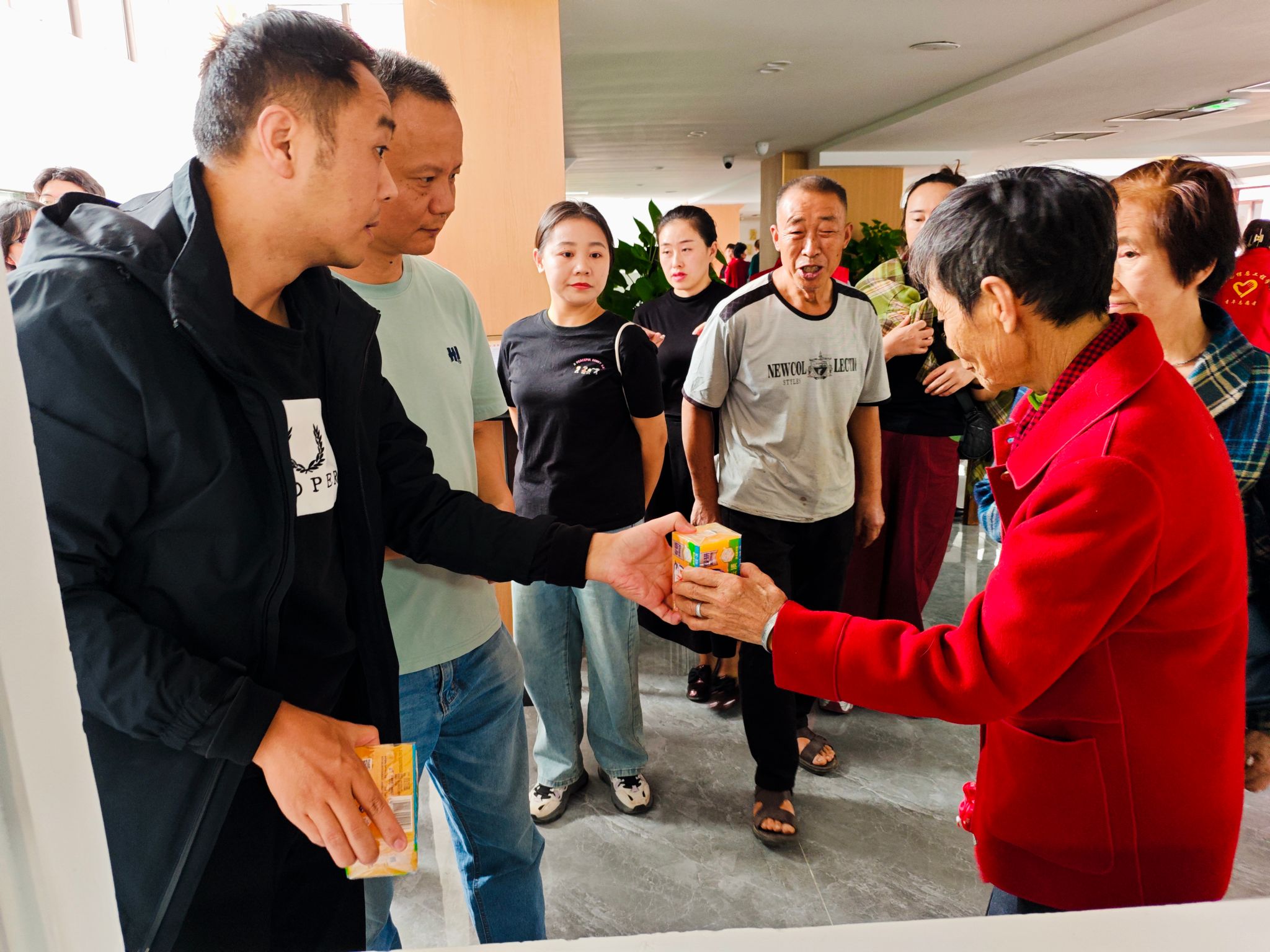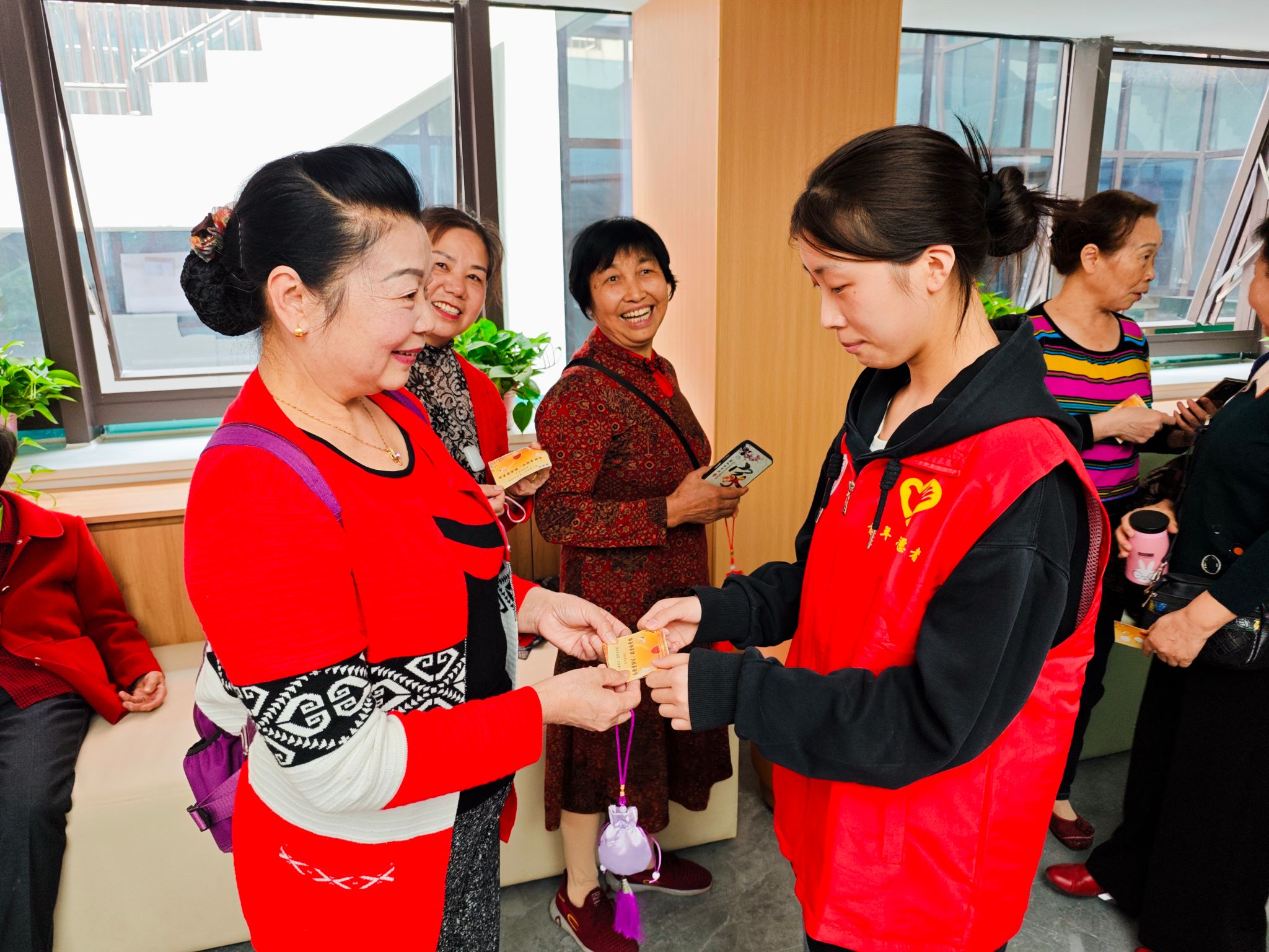 活动渐渐来到了尾声,在集章卡上,每一个印章都代表着一次美好的体验,也记录着老人们在这个特别日子里留下的欢声笑语。老人们拿着集章卡,欢喜地来到“兑奖处”,用他们手中的集章卡兑下奖品,奖品宜,但情更浓。最后,随着“咔嚓”一声,志愿者与老人们的笑靥定格在那瞬间。