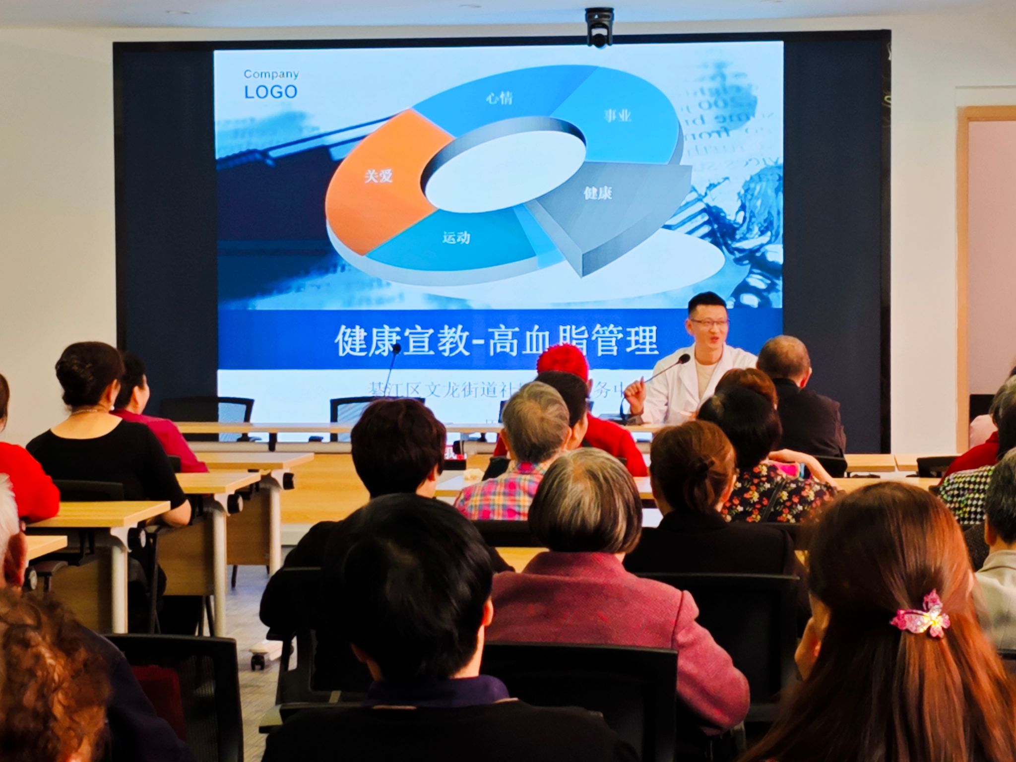 讲解结束后,丰富多彩的活动环节陆续展开。首先,脑血管医院的家庭医生周俊老师在二楼会议室为老人们带来了科普讲座,用通俗易懂的语言讲解了健康知识,让老人们受益匪浅。