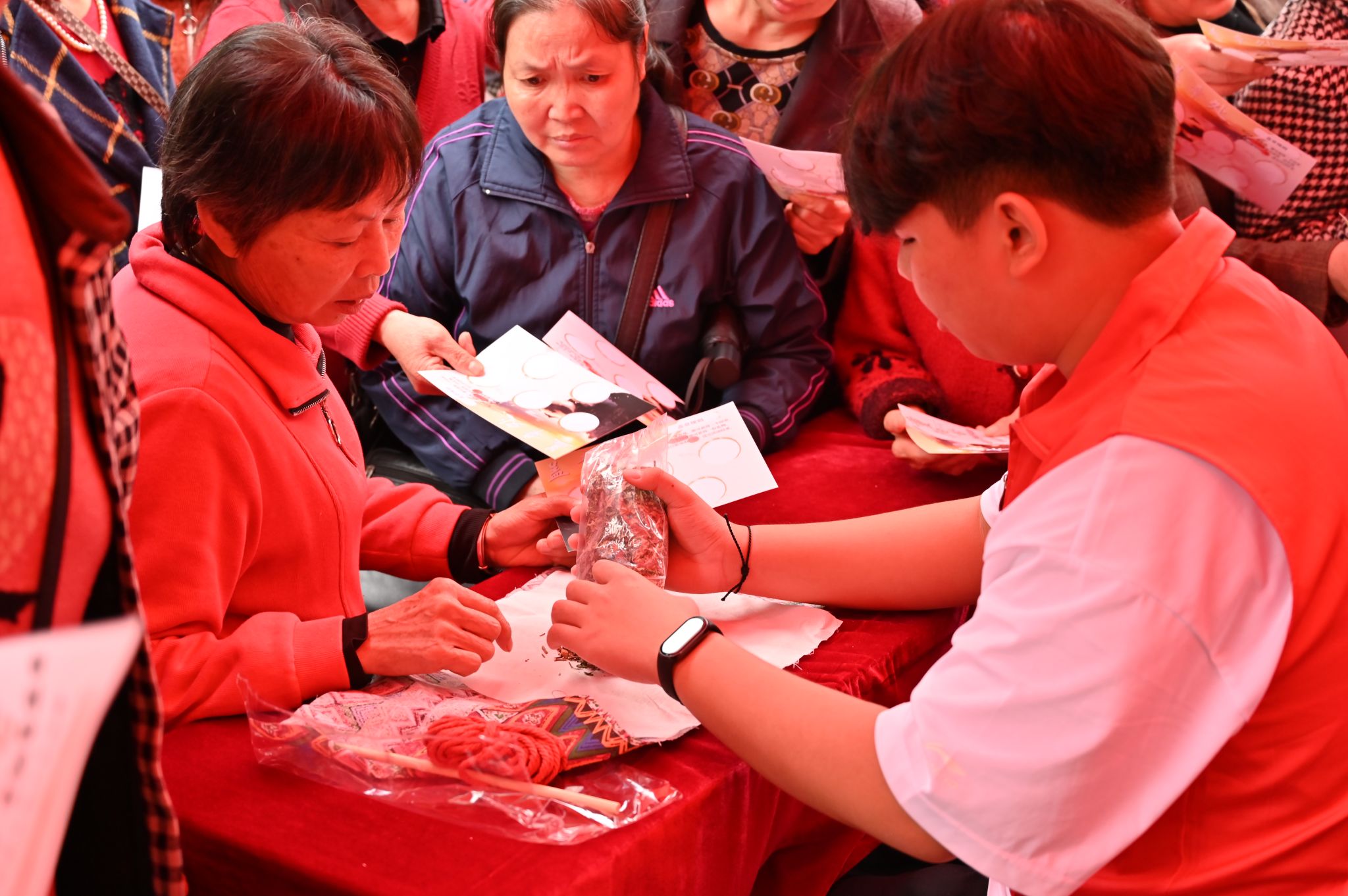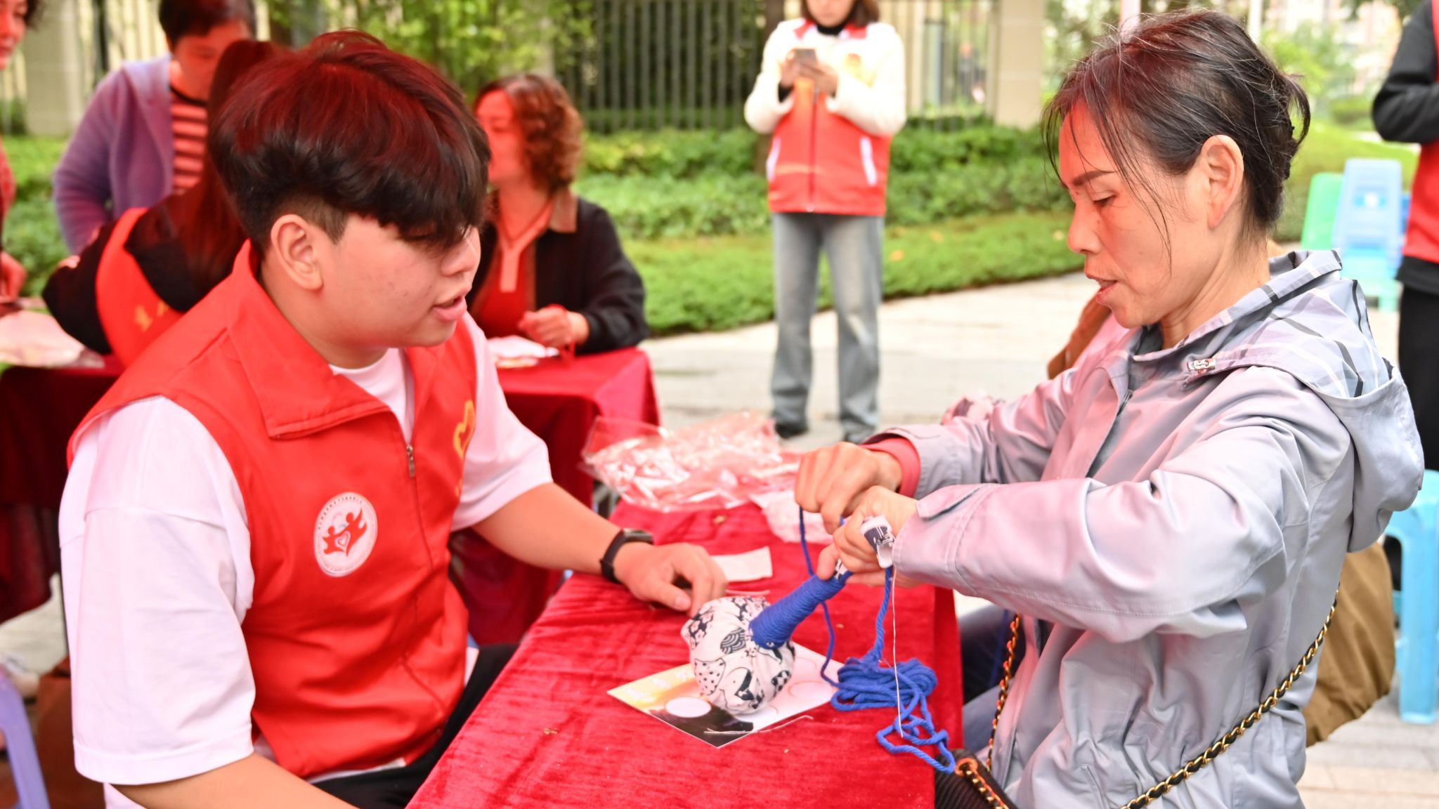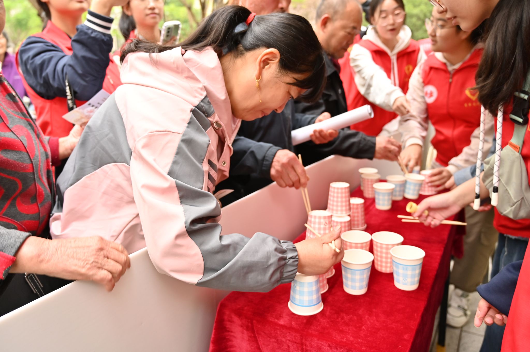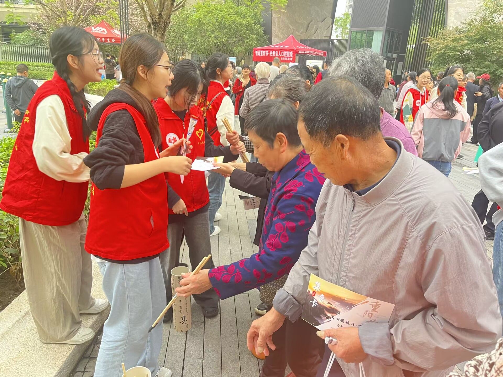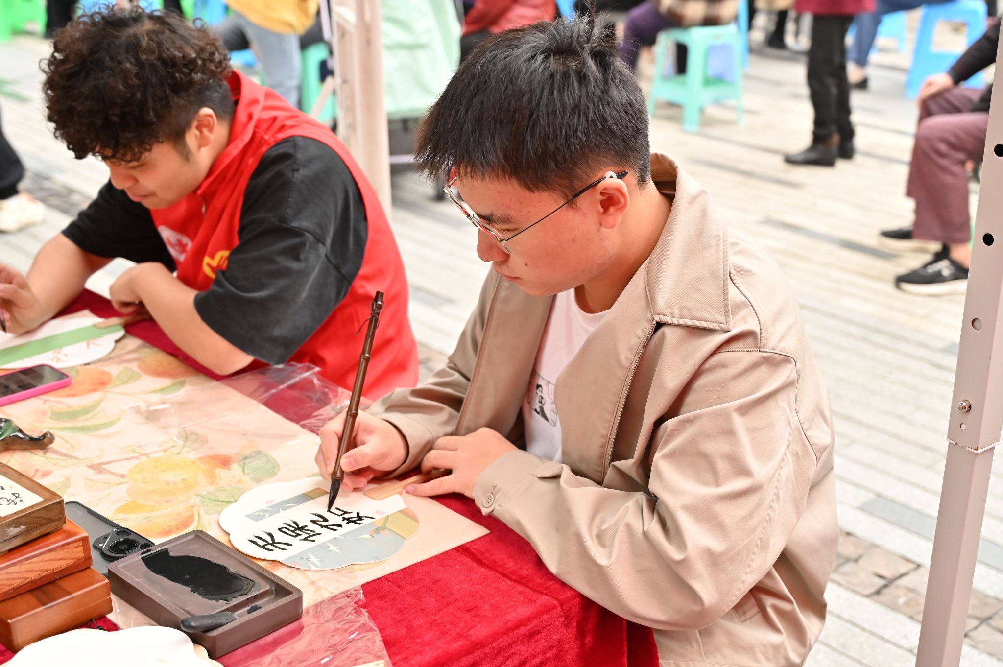青丝映白发,孝亲暖意长。活动现场还专门设置了“传统文化集市”,邀请到学校书法与美术协会参与其中。将艾草锤与香囊制作、折扇手工DIY、书法祝福语书写等优秀传统文化与“孝”文化相融合,让尊老、敬老、孝老有了新的表达方式。手工互动区域,老人们在志愿者的陪伴下一起制作艾草锤贺香囊,一根根针线串起两代人的真情、串起青年学子为老人健康的祈福;书法展区的老人与志愿者们书写出灿烂又辉煌的书法展品,一笔一划间带来情感的交流与心灵的升华,是志愿者为爱、为孝做出的努力。