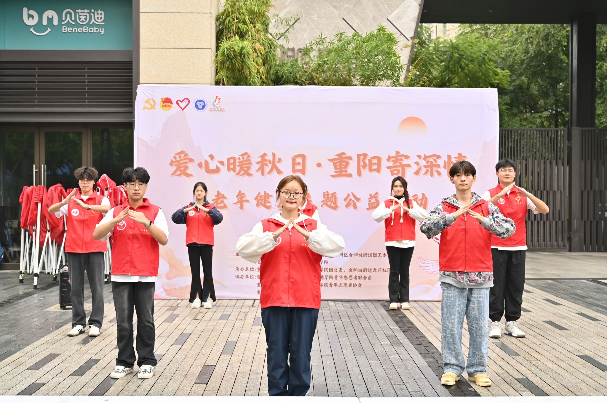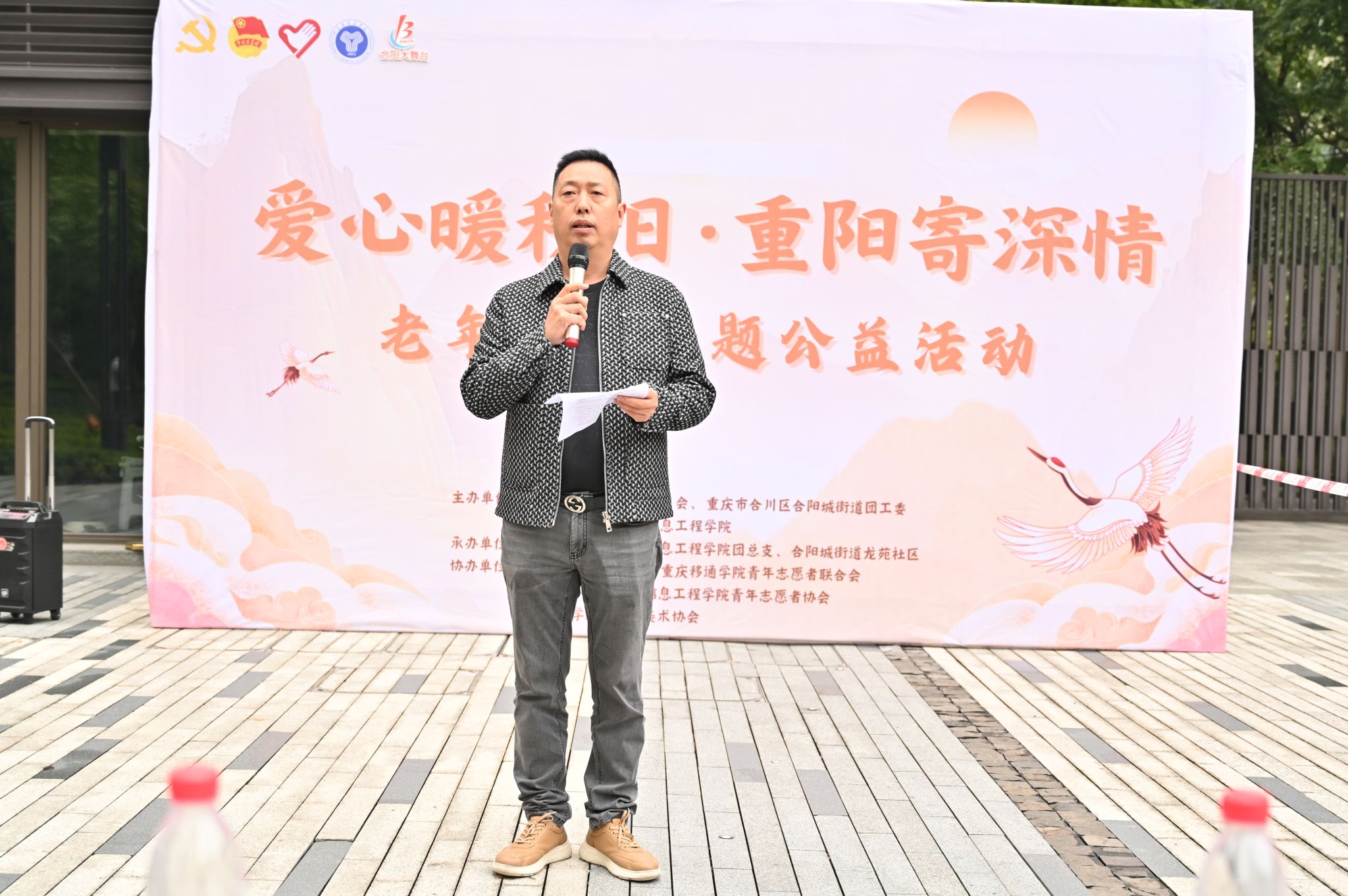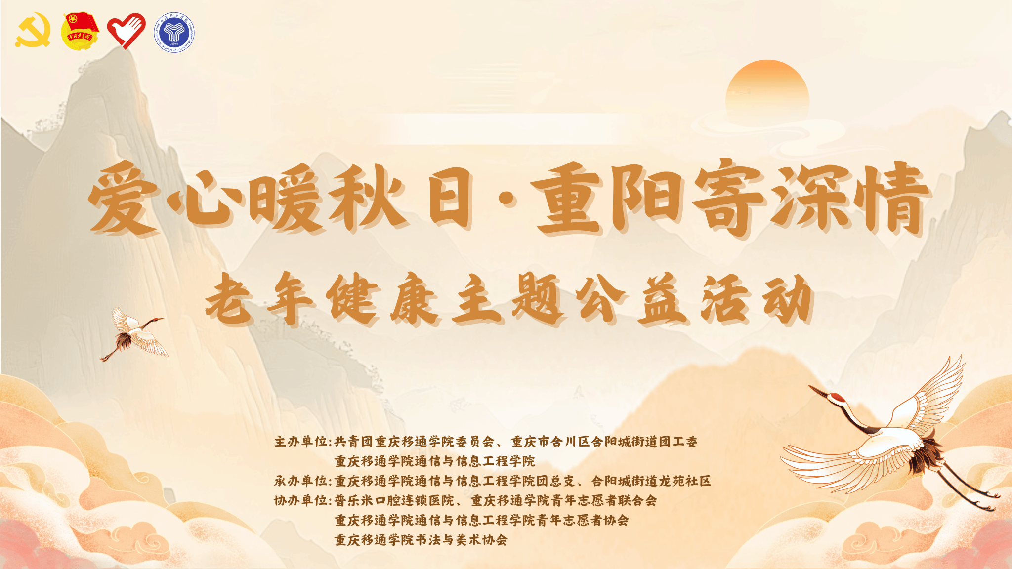 为弘扬中华民族“敬老、爱老、助老、孝老”的传统美德,促进和谐家庭与和谐社会建设,呼吁社会各界注重传统文化,树立尊老敬老的榜样。引导青年大学生学会感恩,树立良好美德观念,增强社会责任感。10月11日14:00,校团委、合阳城街道团工委、通信与信息工程学院、龙苑社区联合开展“爱心暖秋日·重阳寄深情”老年健康公益主题活动。我校团委志愿服务中心主任刘月、通信与信息工程学院团总支书记孙怡、龙苑社区党委书记易本伟、合川普乐米口腔医院市场部负责人邵正兵,社区老人及我校志愿者师生代表共计300余人参与本次活动。