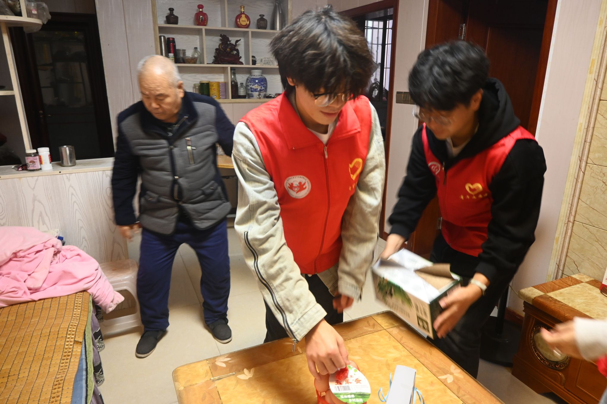 青春携手伴夕阳,爱老敬老度重阳。在这个独属于老人的节日里,还有一部分特别的老人,他们因为疾病、残疾等原因无法参与其中,基于此,志愿者还设置了走访慰问环节。在社区工作人员的陪同下,志愿者走进残疾老人家中,与残疾人及其家人悉心交谈,倾听他们的心声,细致地了解老人们近期的基本生活情况、身体状况,并叮嘱他们要保重身体、健康生活,并为他们送上牛奶、鸡蛋等慰问品及节日的祝福,让他们感受到来自青年人和社会的温暖。