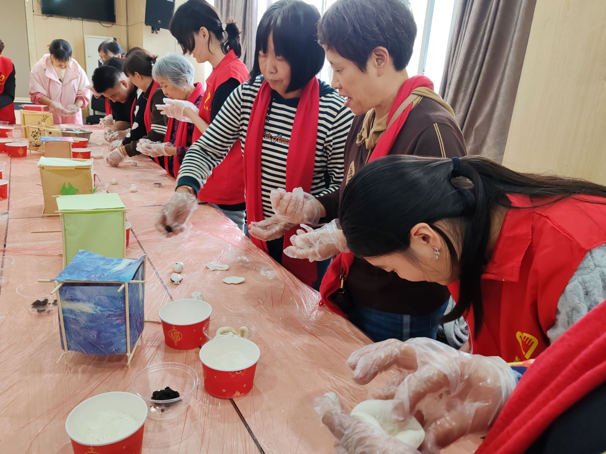 随后志愿者们积极组织社区居民共同参与长寿面和重阳糕的制作。现场气氛热烈而融洽,志愿者们耐心地向居民们讲解制作的步骤和技巧。大家围坐在一起,在各自忙碌的身影中洋溢着对生活的热爱和对传统节日的敬重。在志愿者的指导下,居民们逐渐掌握了制作的要领,大家一边制作,一边交流着生活的点滴,欢声笑语回荡在整个社区。长寿面寓意着健康长寿,重阳糕象征着幸福美满,这份美好的祝福通过大家的双手传递开来,温暖着每一个人的心。