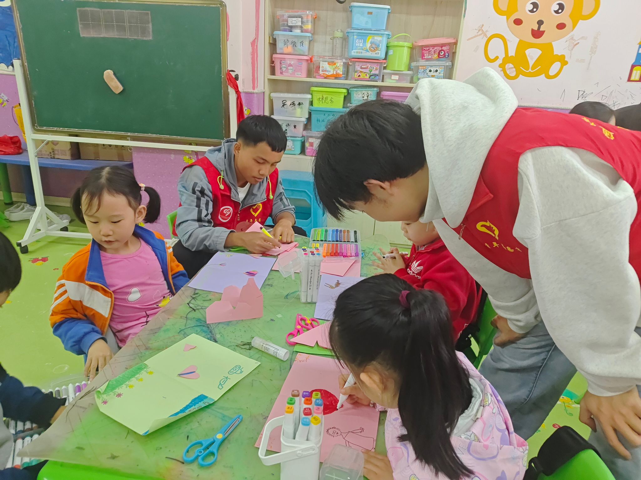讲述完毕后,孩子们对重阳节产生了浓厚兴趣,通过结语的敬老,志愿者提出让孩子们制作贺卡送给家中的长辈。志愿者们引导孩子们学习制作贺卡,在这个过程中,孩子们展现出浓厚的兴趣,纷纷大胆表达自己的想法。在志愿者们的精心指导下,孩子们制作出造型各异的贺卡。为了进一步符合主题,同时也考虑到了幼儿园小朋友的能力,志愿者们也帮助他们在贺卡上写下了对于长辈的祝福。当孩子们看到自己亲手制作的贺卡时,他们兴奋地展示着贺卡,并期待着长辈收到贺卡的反应,他们准备用自己亲手制作的贺卡去向长辈传递爱。