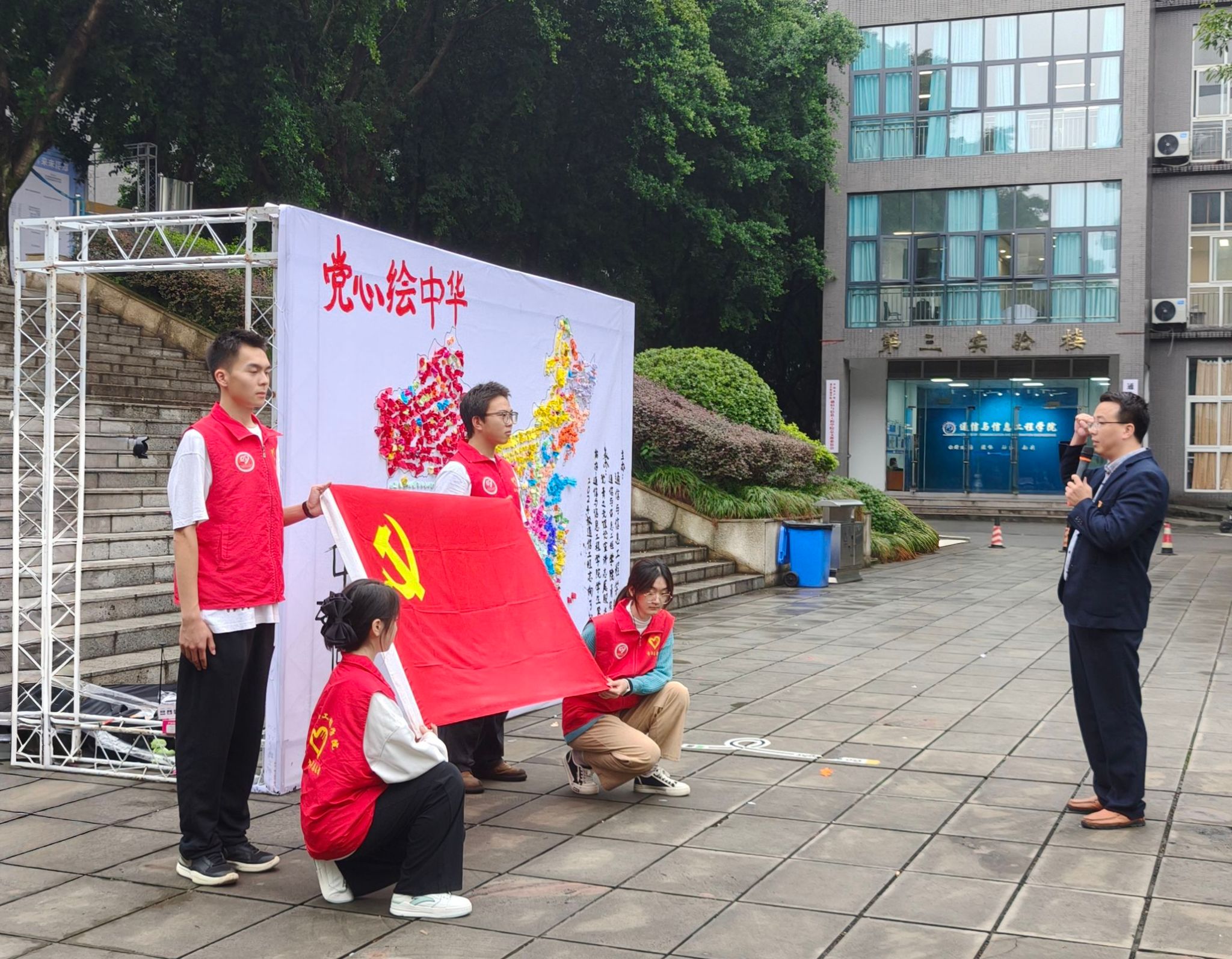 从雪域高原之颠,到杏花春雨江南;从大漠孤烟塞北,到碧海连天无边,神州大地上处处闪耀着五星红旗的曙光。活动现场,党员同志们用手摩挲着中国地图,他们用心执笔写下中国,我爱你。他们的眼中含着对祖国炽热的爱,将这份浓厚的感情寄托在皱纹纸上,将纸折成一朵又一朵不同种类的花,粘贴在中国地图上。党员同志们来自五湖四海,在中国各个地方生根发芽开出姿态不一的花,以他们的渺茫之躯共建巍峨壮阔的盛世之景。殷殷之情俱系华夏,寸寸丹心皆为家国。