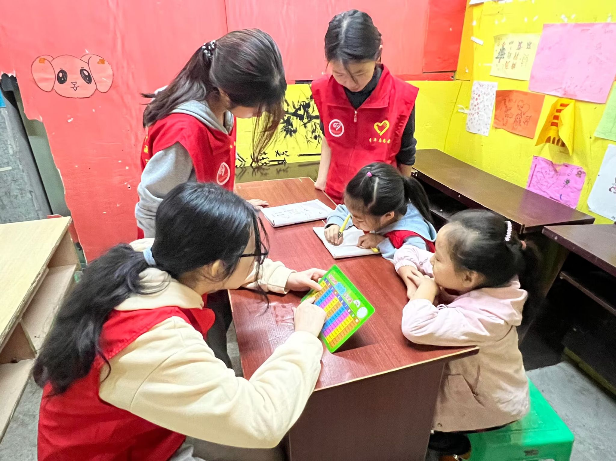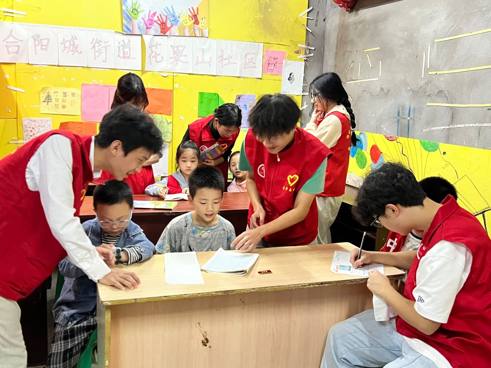 活动开始,志愿者们站在阵地门口迎接着小朋友们的到来,带领他们进入活动阵地。遵循支队的办学原则,志愿者们首先对小朋友们的课后作业进行了辅导,面对小朋友遇见的难背的口诀表和不会写的作文都耐心地给予了讲解和答疑,对于理解慢的同学同时也给了鼓励,让小朋友们觉得学习不再枯燥,而是轻松活跃的学习气氛。