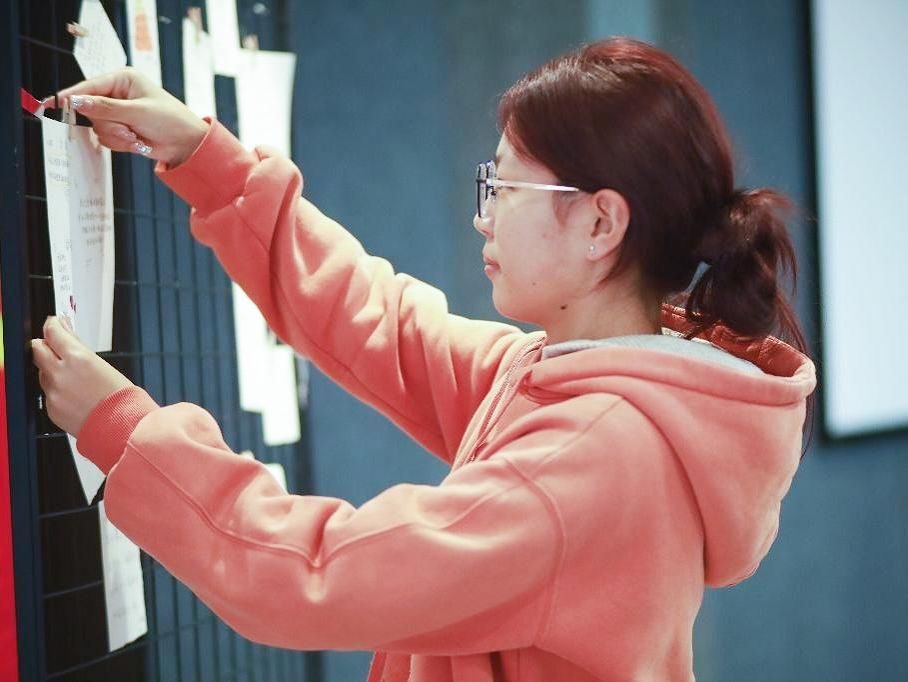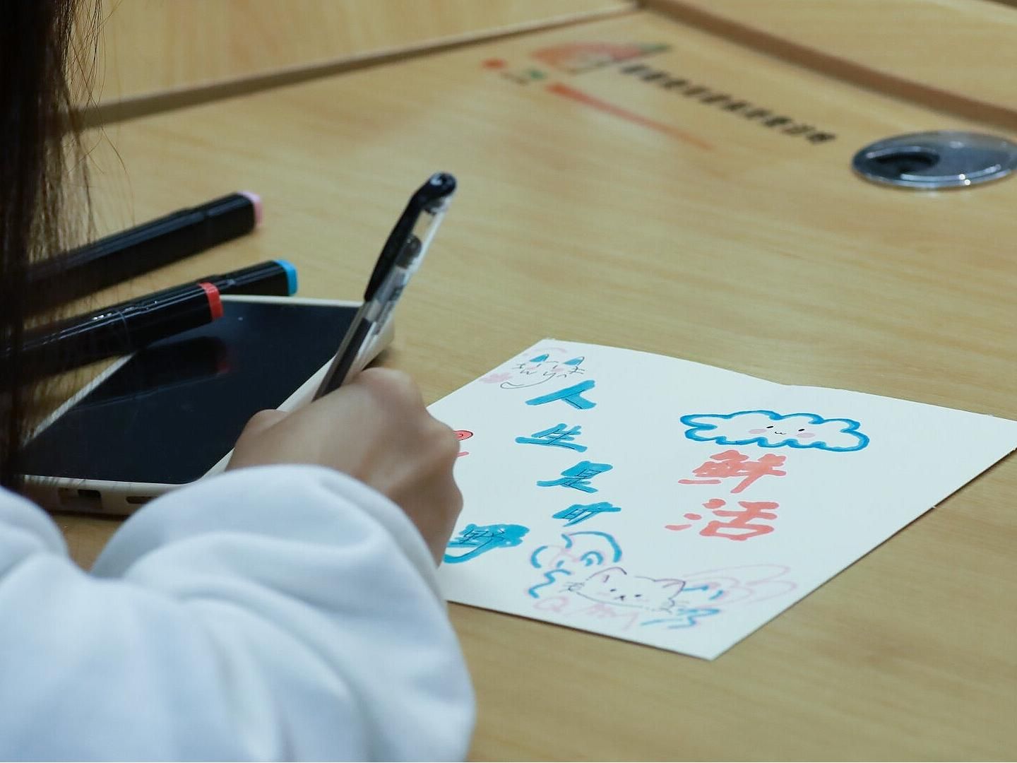 伴随着轻柔的背景音乐,参与者们静心书写。随着一笔一划的流转,同学们将满满的心意和祝福,寄托在了这一张张薄薄的信纸上,用心书写下的每一封信都承载着他们的情感和故事。书写完毕后,同学们将自己的信纸悬挂于展示架上。多彩的信纸随着风轻轻摇曳,形成了一条色彩斑斓、琳琅满目的风景线。