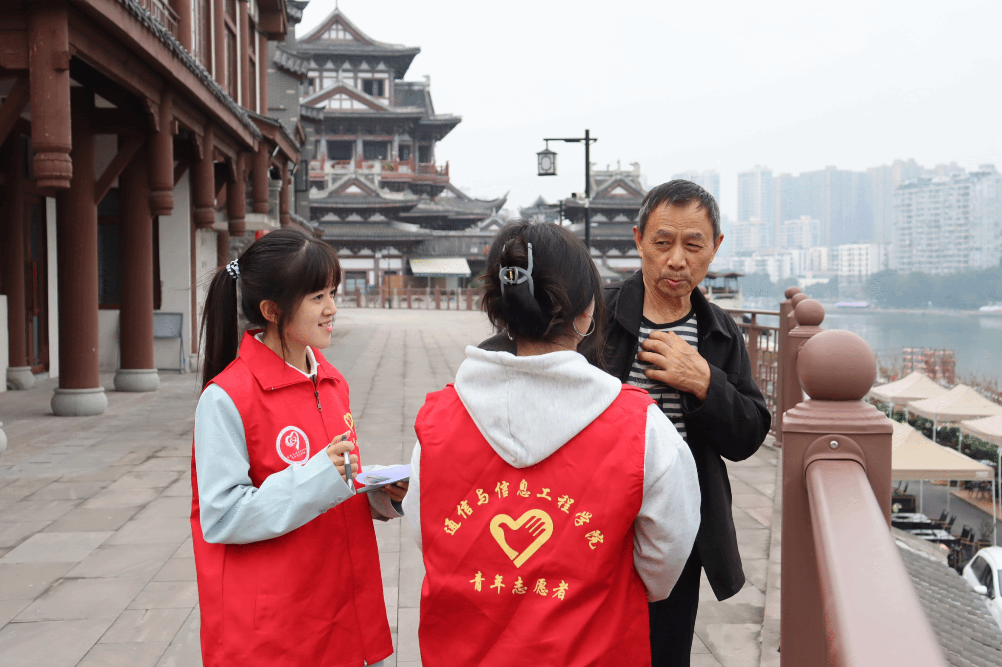为让青年学子们亲身体验到环保行动的实际意义与深远影响,从而在他们的心中深植环保理念的种子,激励他们成为未来社会环保事业的坚实力量与先锋队伍,2024年11月15日,通信与信息工程学院“环保360”保护三江之水志愿服务专项支队与“闻民三江”社会问题调研志愿服务专项支队携手合作,在文峰古街开展了“环保在行动,守护周边景”活动。