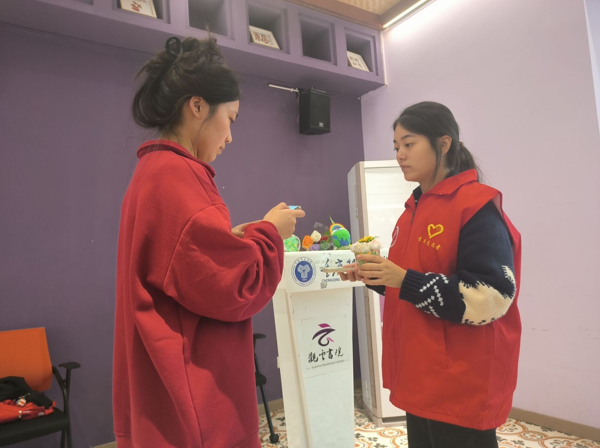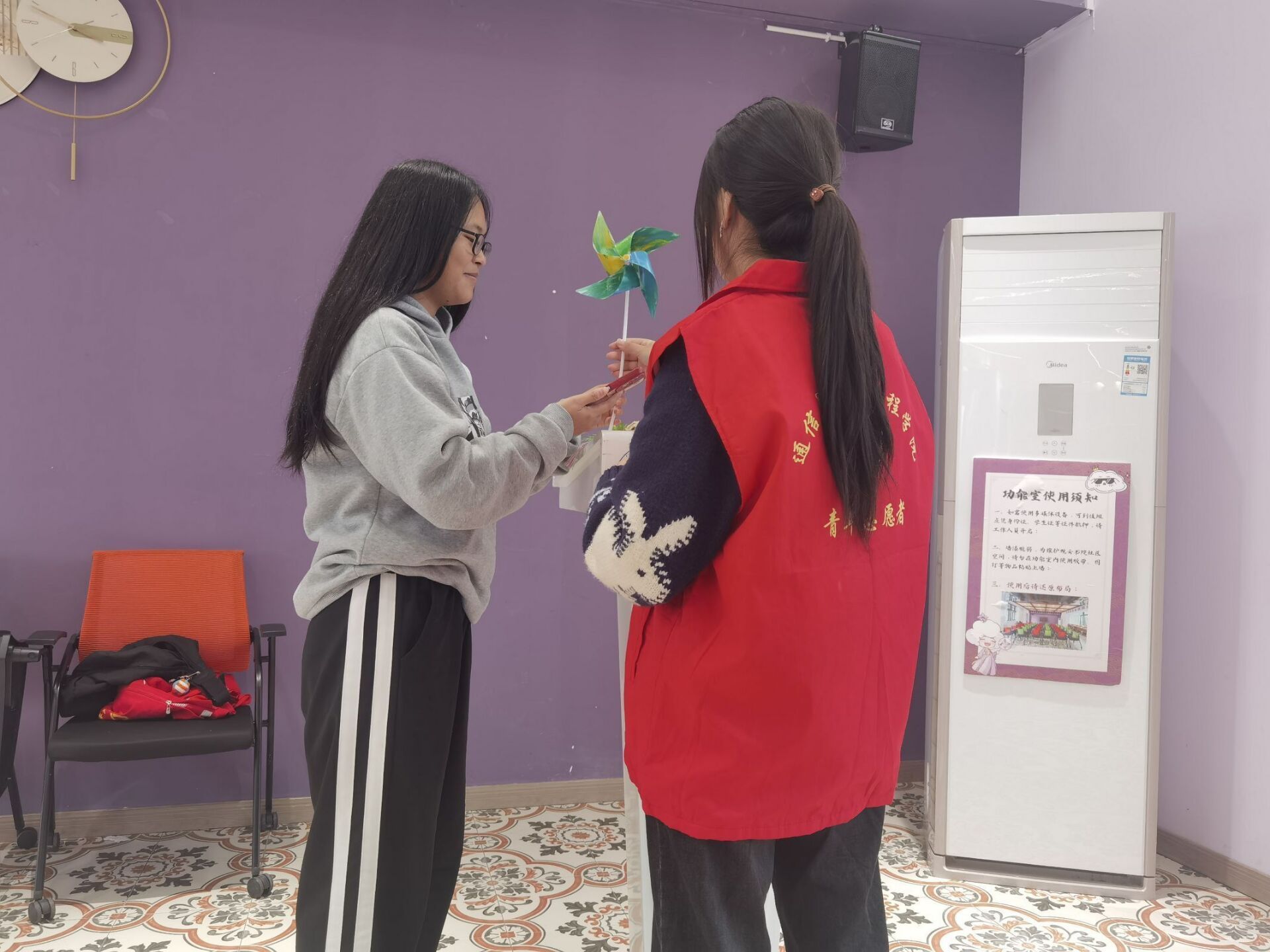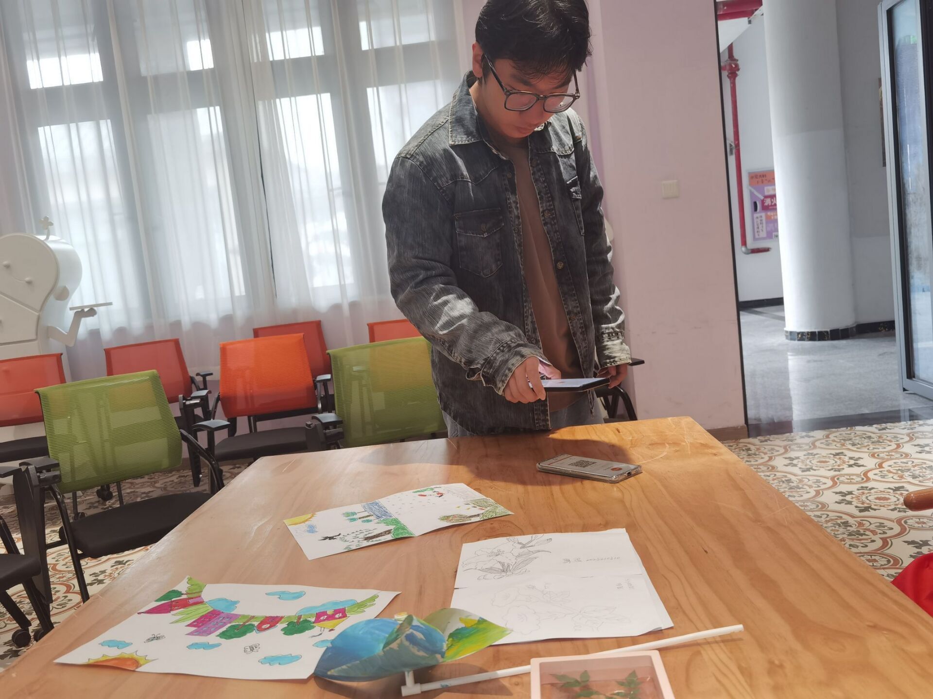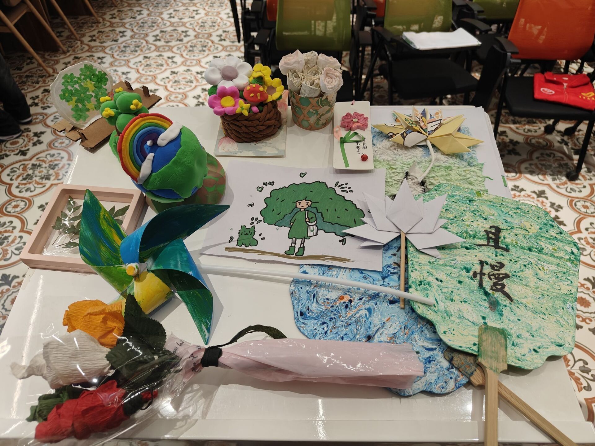 活动当天,同学们早早地来到观云书院芒种·华文书吧,他们身着各色衣服,脸上洋溢着对环保的热情和展示作品的期待。他们带着自己精心制作的作品,有栩栩如生的纸艺花朵,有色彩斑斓的风车,还有风格迥异的画作等。这些作品仿佛在诉说着一个个环保故事,吸引着在场每一个人的目光。