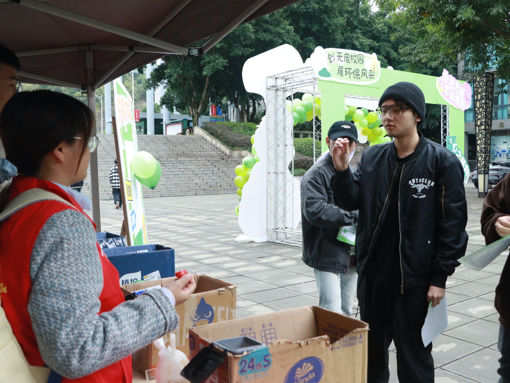 在环保游戏区内,设置了环保知识竞答、垃圾分类挑战等互动环节,让同学们在轻松愉快的氛围中了解环保的重要性。同时活动还有设有精美礼品赠予每一位积极参与的同学,通过互动和体验,激发了同学们对环境保护的兴趣和责任感,进而将环保无废理念融入日常生活中。