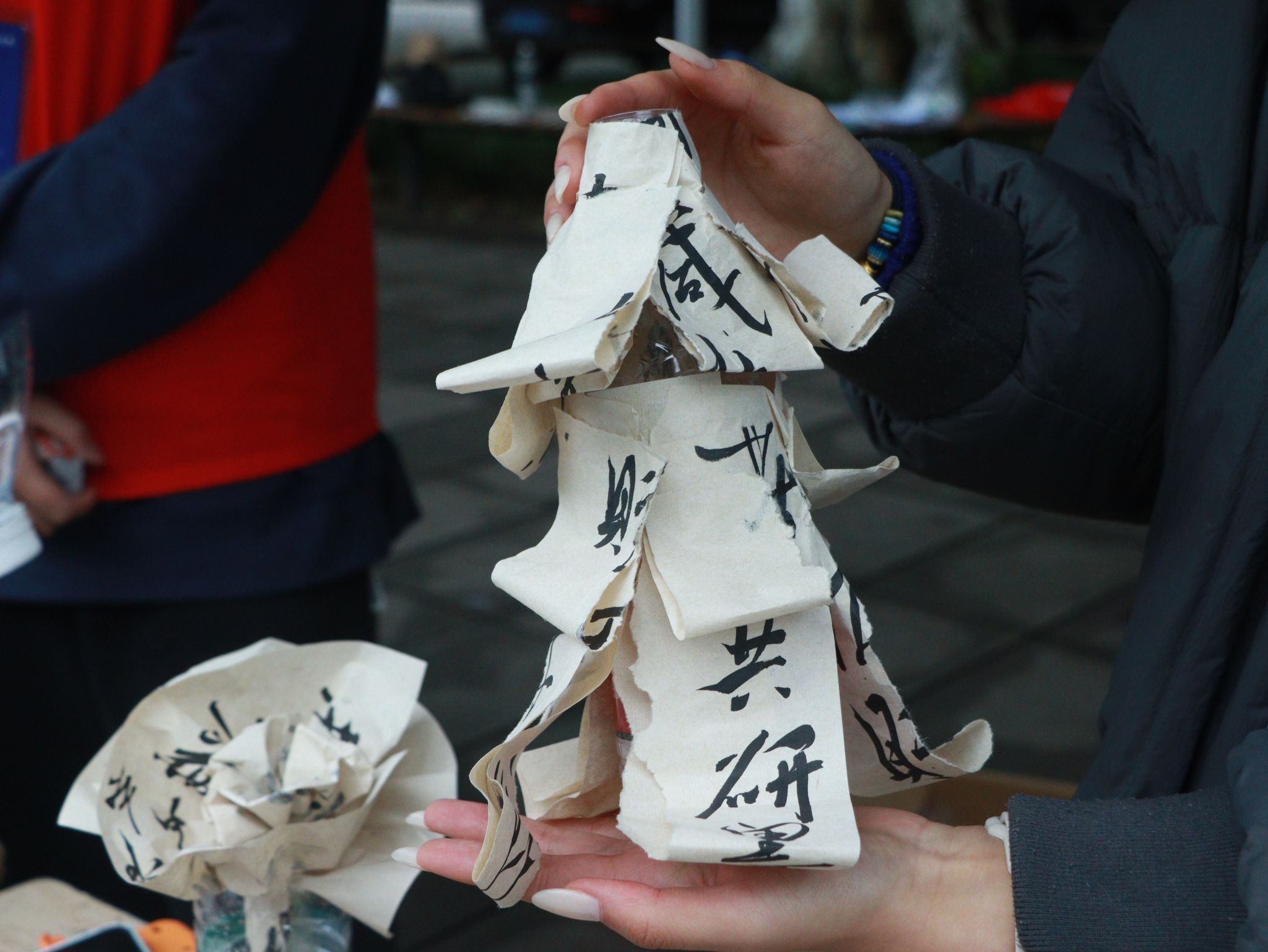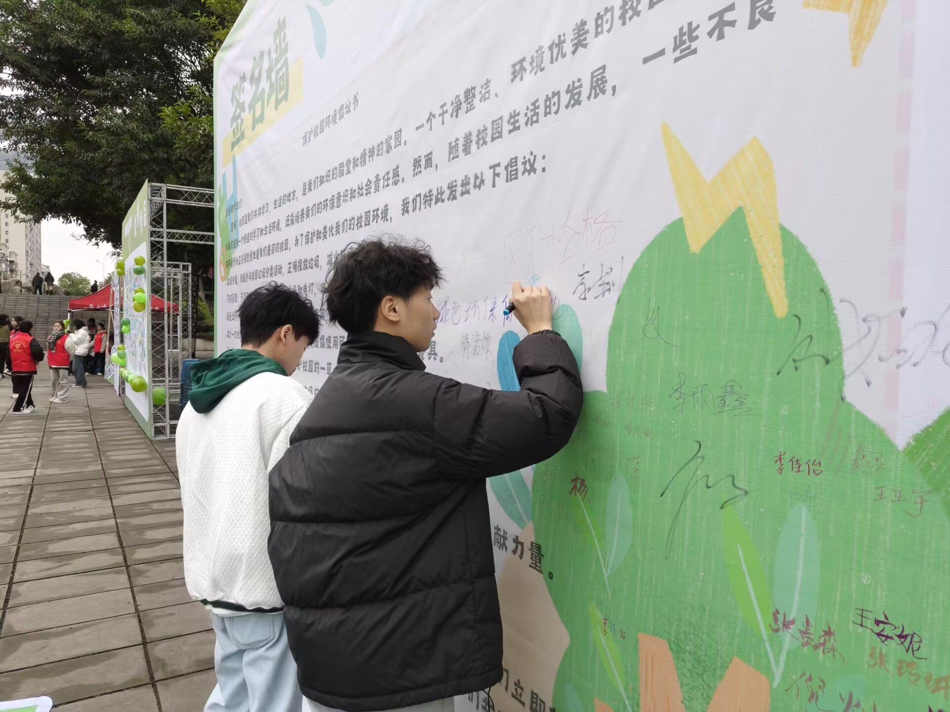 该环保集市共有“旧物换新区、创意改造区、自然手工区...”等5个区域。活动伊始同学们根据志愿者引导纷纷在环保寄语墙上写下“绿色无废”相关寄语,并前往相关区域参与“无废”活动。