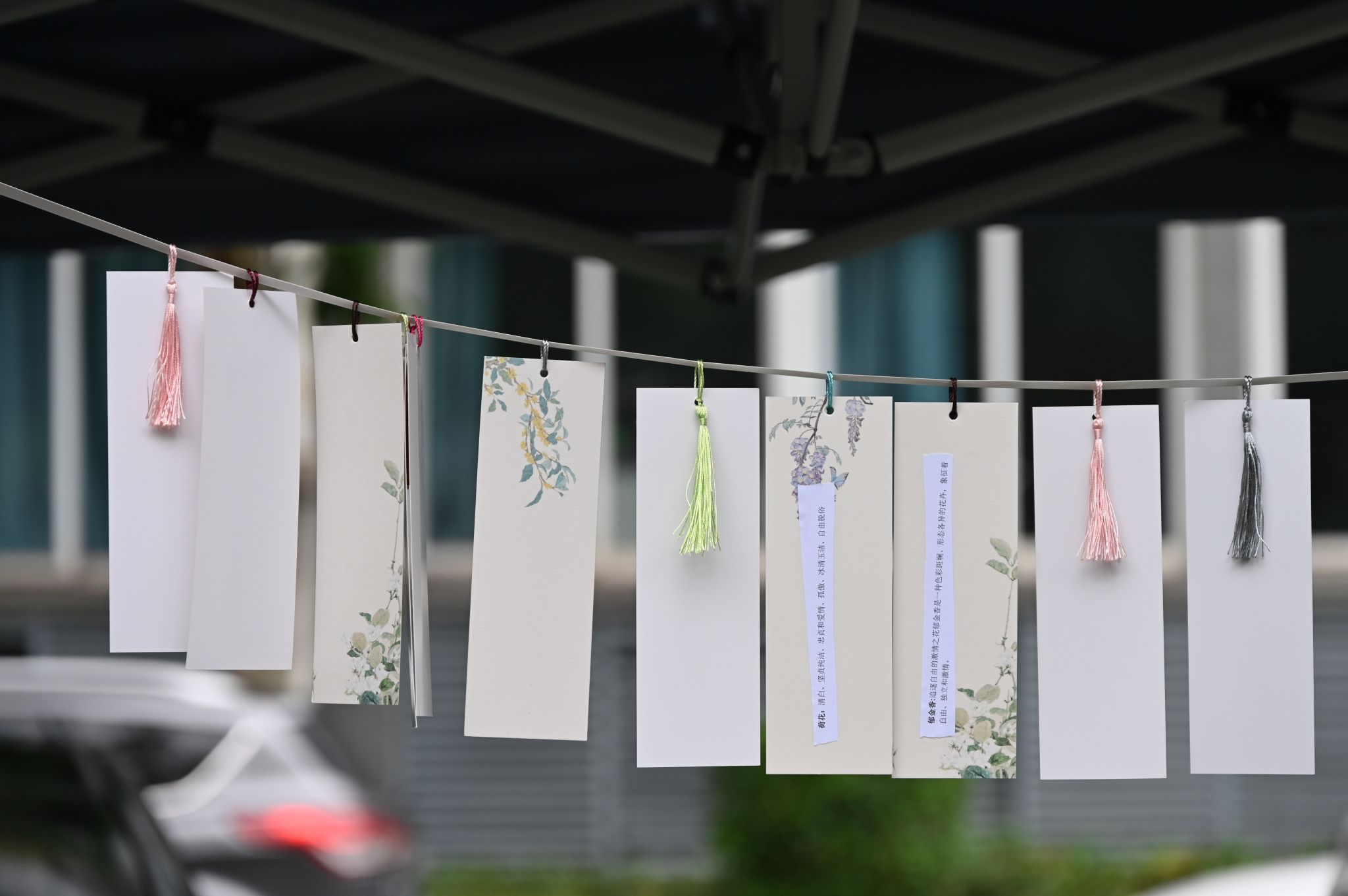 “写故事”环节,同学们在玫瑰信纸上倾泻着自己的情感,将那些深刻的记忆转化为文字。一张张信纸封存在展架上,像是一场无声又动人的诉说。在这里,每一个故事都是一朵花,每一朵花都承载着一个梦。那些关于友情的珍贵、亲情的温暖和成长的苦涩,都在同学们的笔下一一绽放。故事如同被赋予了新的生命,随着花香飘散在校园的每一个角落,花香与墨香交织,故事与希望同行。