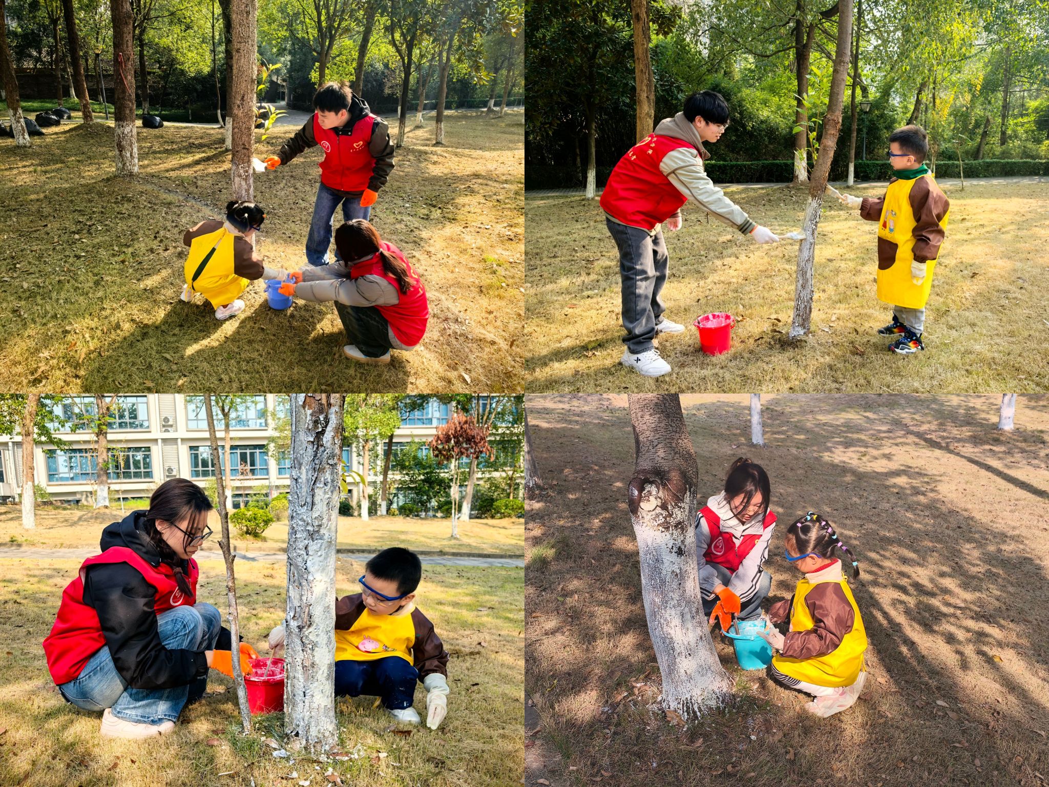 为培养孩子们的环保意识和劳动技能,由重庆移通学院通信与信息工程学院“环保360”保护三江之水志愿服务专项支队联合重庆市合川区新华幼儿园、重庆移通学院别都书院于2024年11月30日在重庆移通学院合川校区北校区读者公园开展了“暖树御冬韵,护绿育童心”活动。此次活动志愿者共计参与30余人,活动共计受益人数100余人。