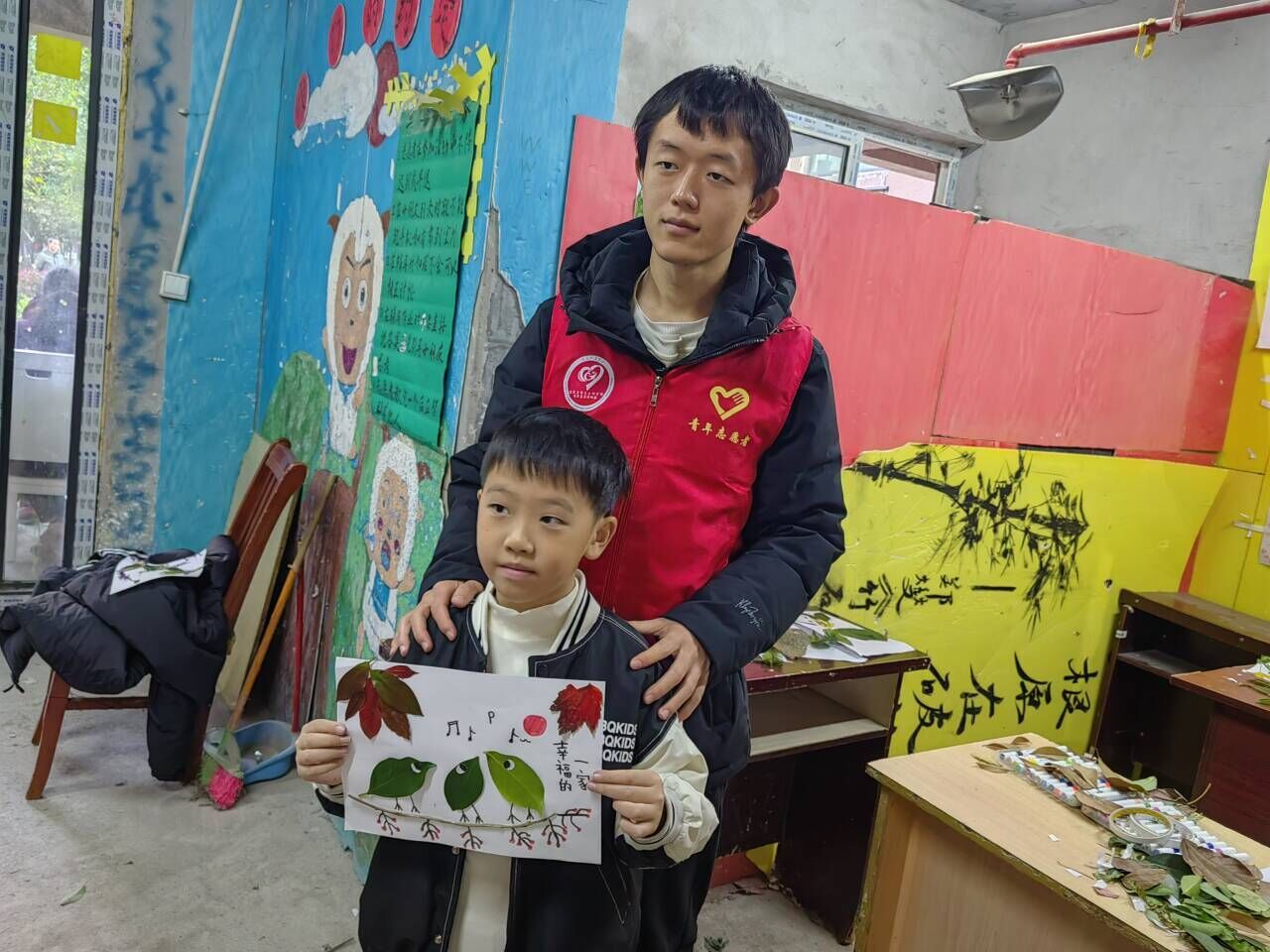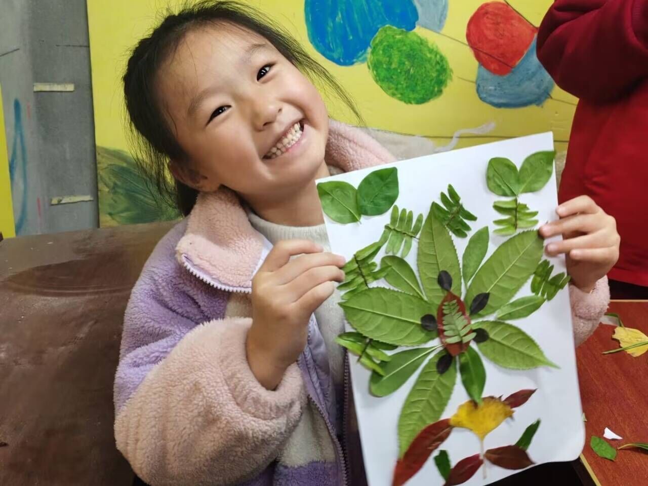 孩子们和志愿者们共同为树叶画想一个美好的寓意,并在纸张上写上了每位孩子的名字,同画作一起进行了合照。合照之后,孩子们提议可以将画贴在墙上,留下这一个美好的瞬间。此次粘贴画活动使孩子们有创作出美丽画作的成就感,展现出他们纯真的笑容。这些树叶画是他们在学习之外可以亲近自然之声,感受自然之美的一个非常好的机会。