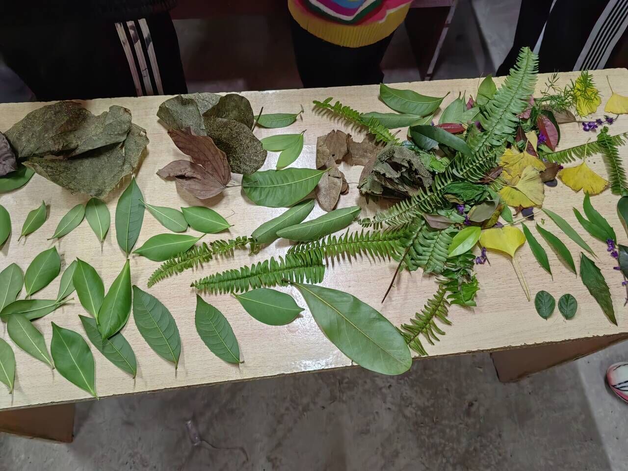 在活动开始前,支队长先带领志愿者们提前到达阵地打扫卫生,将之前采摘好的各种树叶摆放在桌子上,为即将到来的孩子们提供一个好的创作环境。