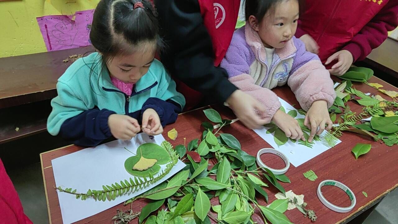 五彩斑斓的树叶是大自然的杰作,每一片树叶都带着大自然的灵气,树叶在孩子们的手中也能焕发出多彩的姿态,创作出一幅幅美妙的作品。为了让孩子们在秋季之后冬季来临之时感受美、表现美、创造美,提高他们的动手能力。我们特制定本次“树叶奇迹,约“绘”冬季”志愿服务活动,旨在从贴画中提高孩子们的艺术修养。2024年11月30日下午,通信与信息工程学院“太阳花亲情驿站"关爱双职工子女志愿服务专项支队来到重庆市合川区合阳街道东邦花果山小区开展了“树叶奇迹,约“绘”冬季”志愿服务活动。