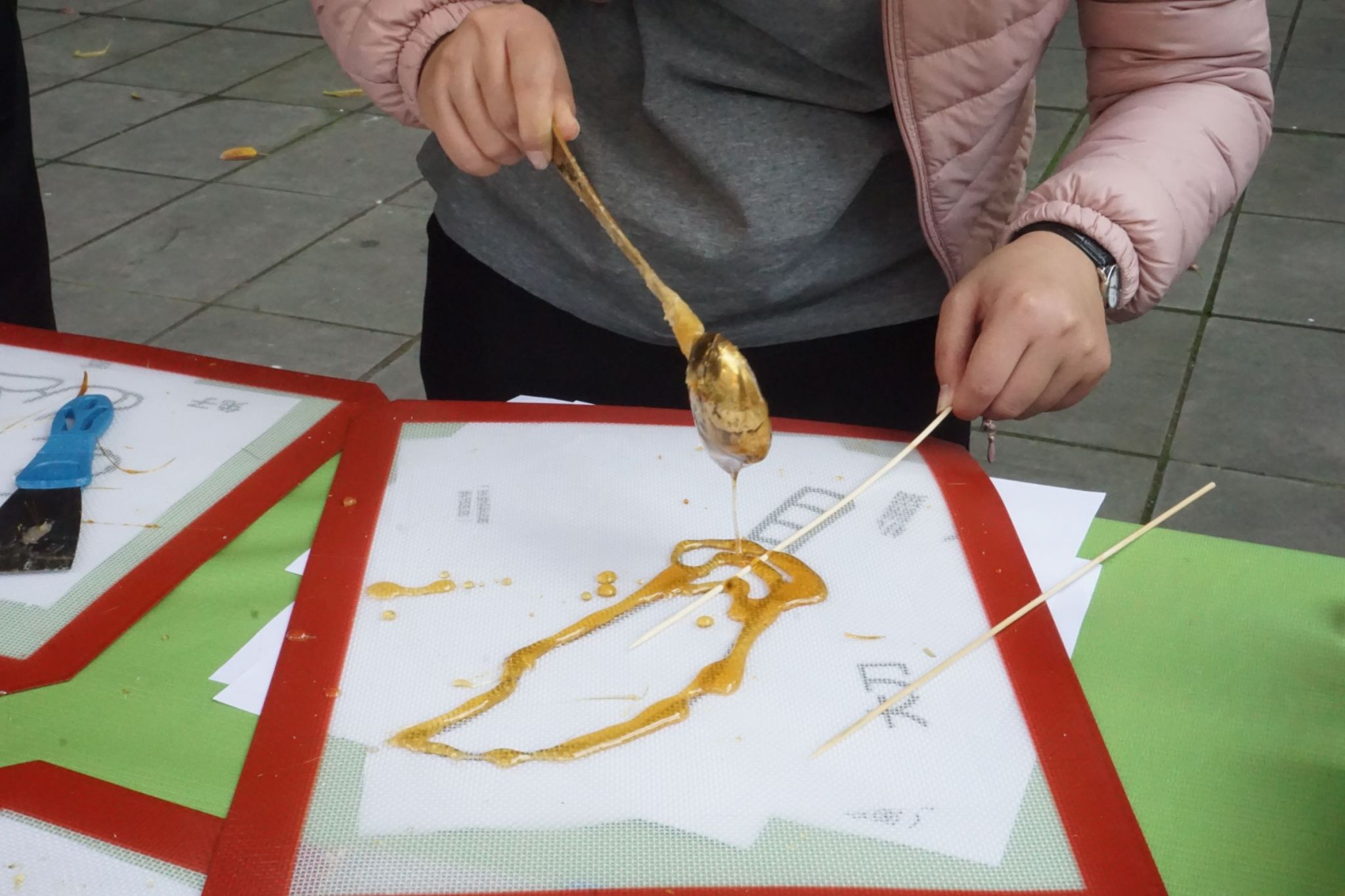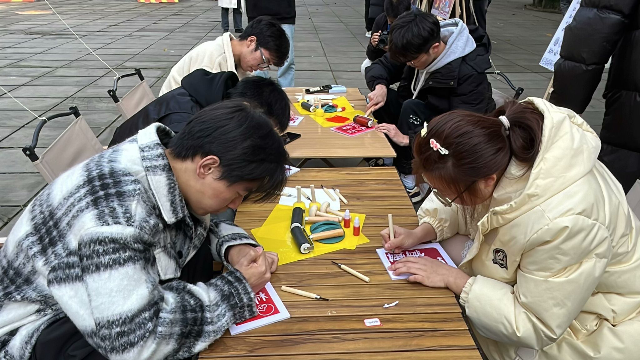 不远处糖画摊,同学们将熬制好的糖液轻轻舀起,糖丝在每一位同学的巧手下“活”了,腾空的海豚,奔跑的小猪,还有勇者的宝剑等。这些活动,让通信学子对祖辈传承下来的文化瑰宝涌起一股敬畏与热爱之情,也让他们意识到,在追逐现代科技的同时,更不能忘却这些蕴含着民族智慧与情感的传统技艺,它们是历史的见证,是民族精神的传承,需在岁月的长河中被珍视与守护。
