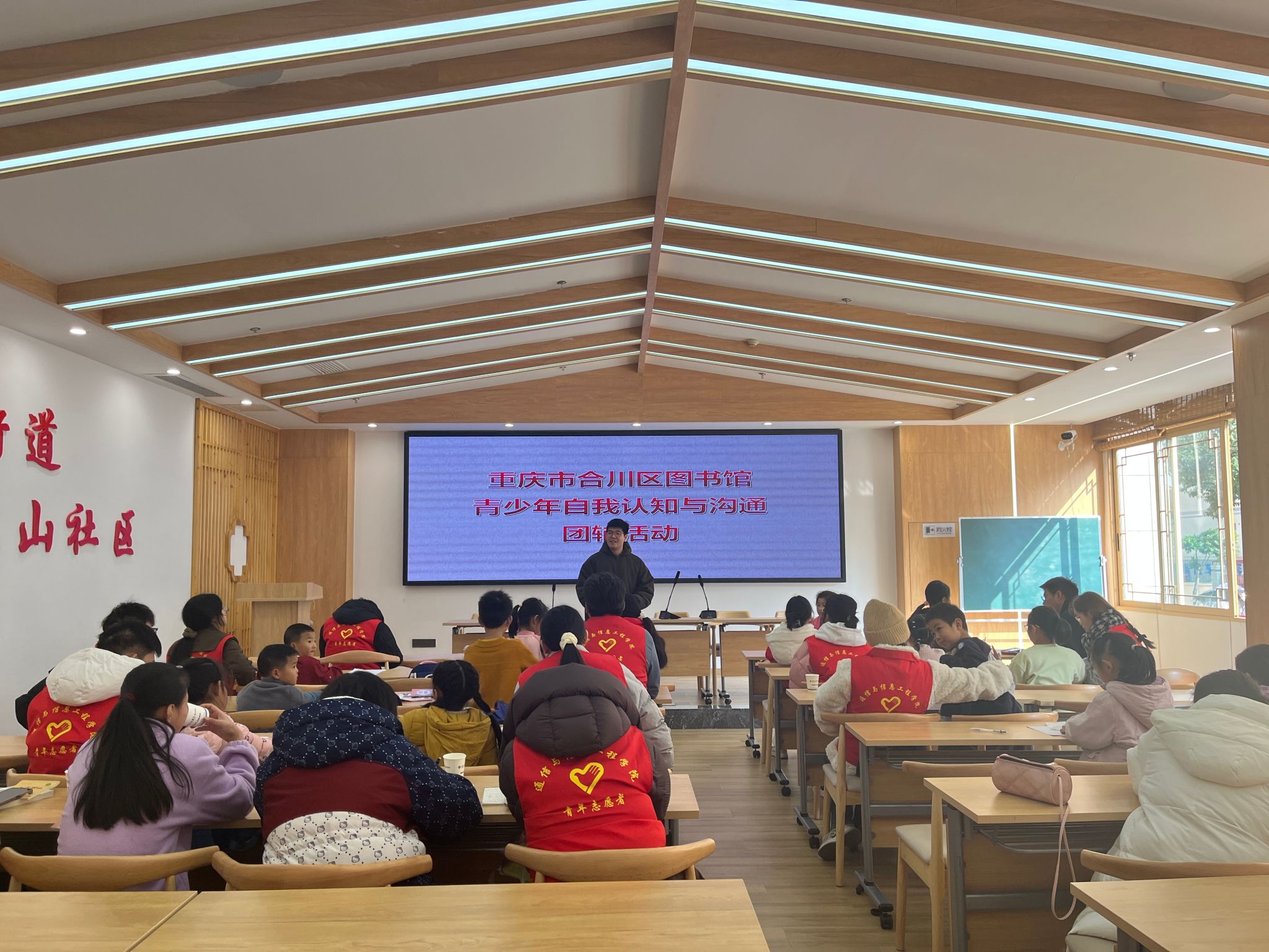在当今快节奏的生活与学习环境下,青少年的心理健康愈发受到重视,尤其是要关心留守儿童的心理健康。值此之际,合川区图书馆联合通信与信息工程学院“白鹿课堂”支教社区留守儿童志愿服务专项支队于2024年11月30日成功举办了“守望成长,心灵相伴”志愿服务活动,旨在为白鹿山社区的小朋友们搭建一个释放压力、增进交流、强化心理素质的优质平台,一场关乎心灵呵护的行动就此拉开序幕。共计参与人数38人,受益人数43人。