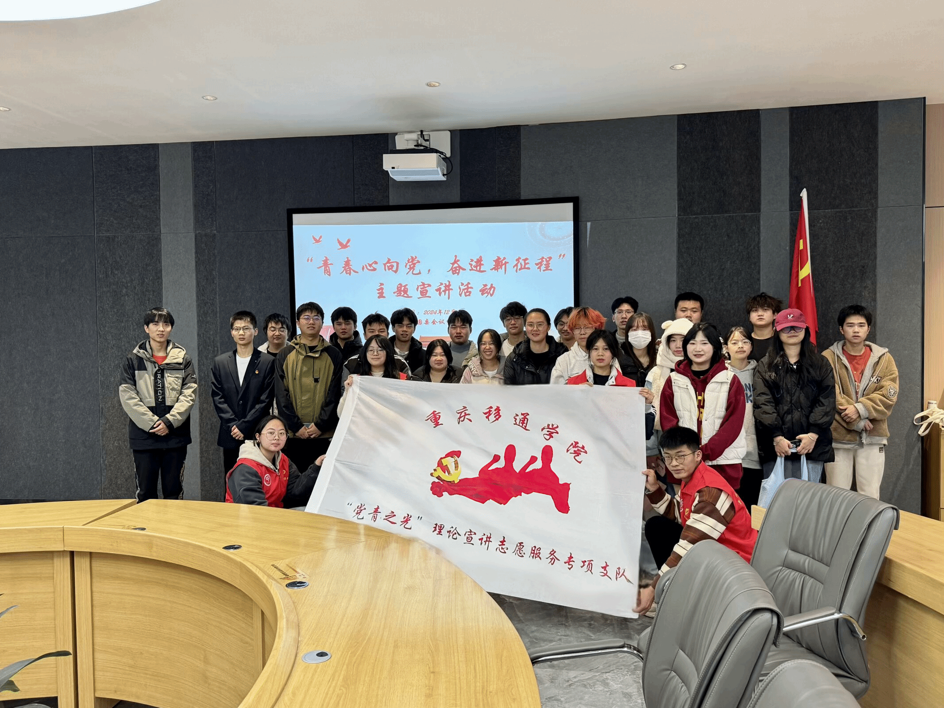 为帮助通信学子更好学习党组织的思想理论,汲取党的精华,激发前进热情。2024年12月7日12:30,由重庆移通学院通信与信息工程学院青年志愿者协会主办,重庆移通学院通信与信息工程学院青年志愿者协会承办,“党青之光”理论宣讲志愿服务专项支队、2024级通信工程03支部协办的“强化党性修养,践行初心使命”系列活动在重庆移通学院(合川校区)南湖书院圆桌会议室成功举办。