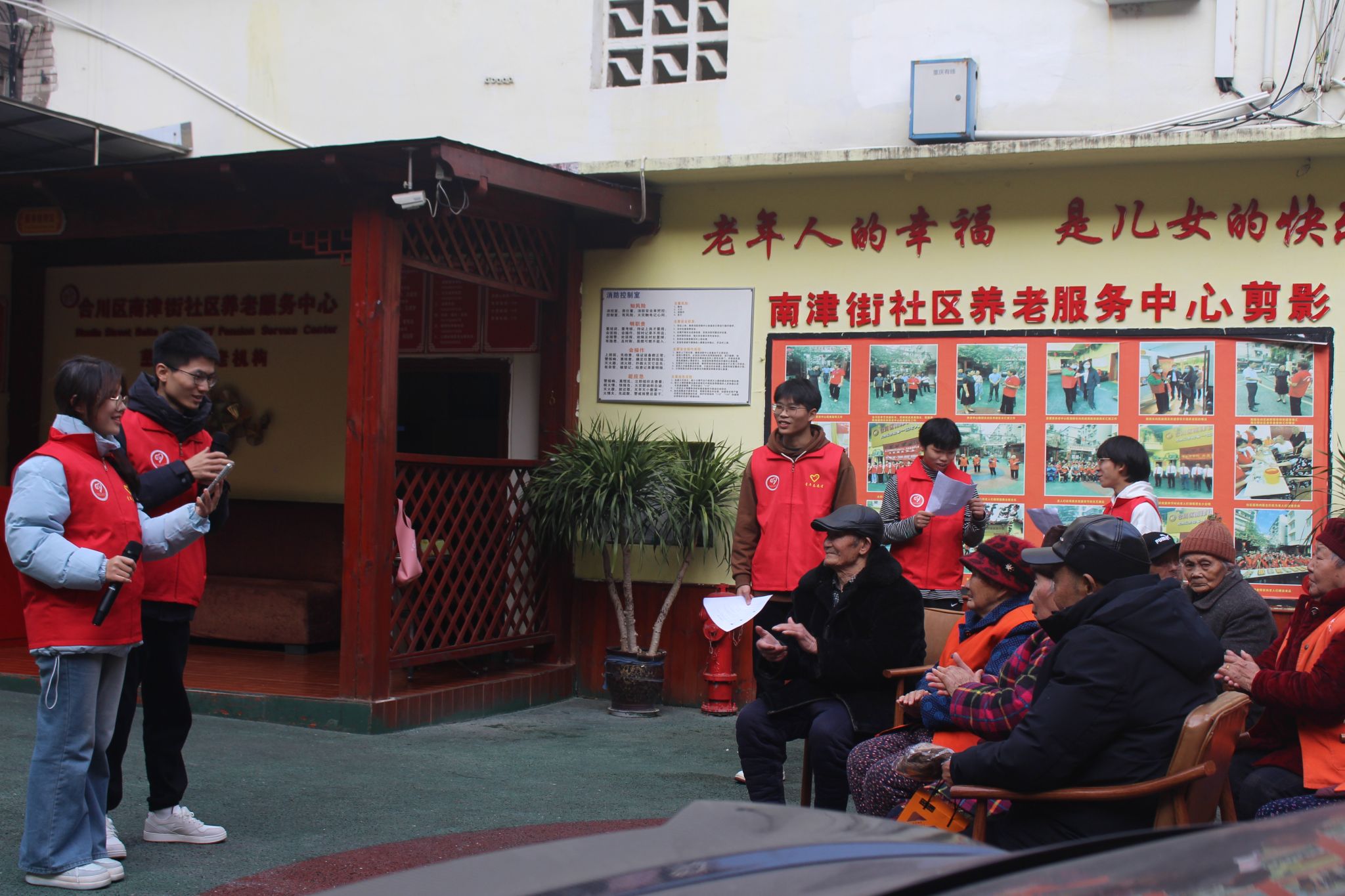 为了丰富老年群体的精神世界,推动社会对老年群体问题的关注。2024年12月11日,“幸福来敲门”关爱社区空巢老人志愿服务专项支队、“闻民三江”社会问题调研专项支队、劳育先锋”志愿服务专项支队于白鹿社区永益养老院开展此次冬季送暖志愿活动。此次活动共计20余人参与,活动共计受益100人。