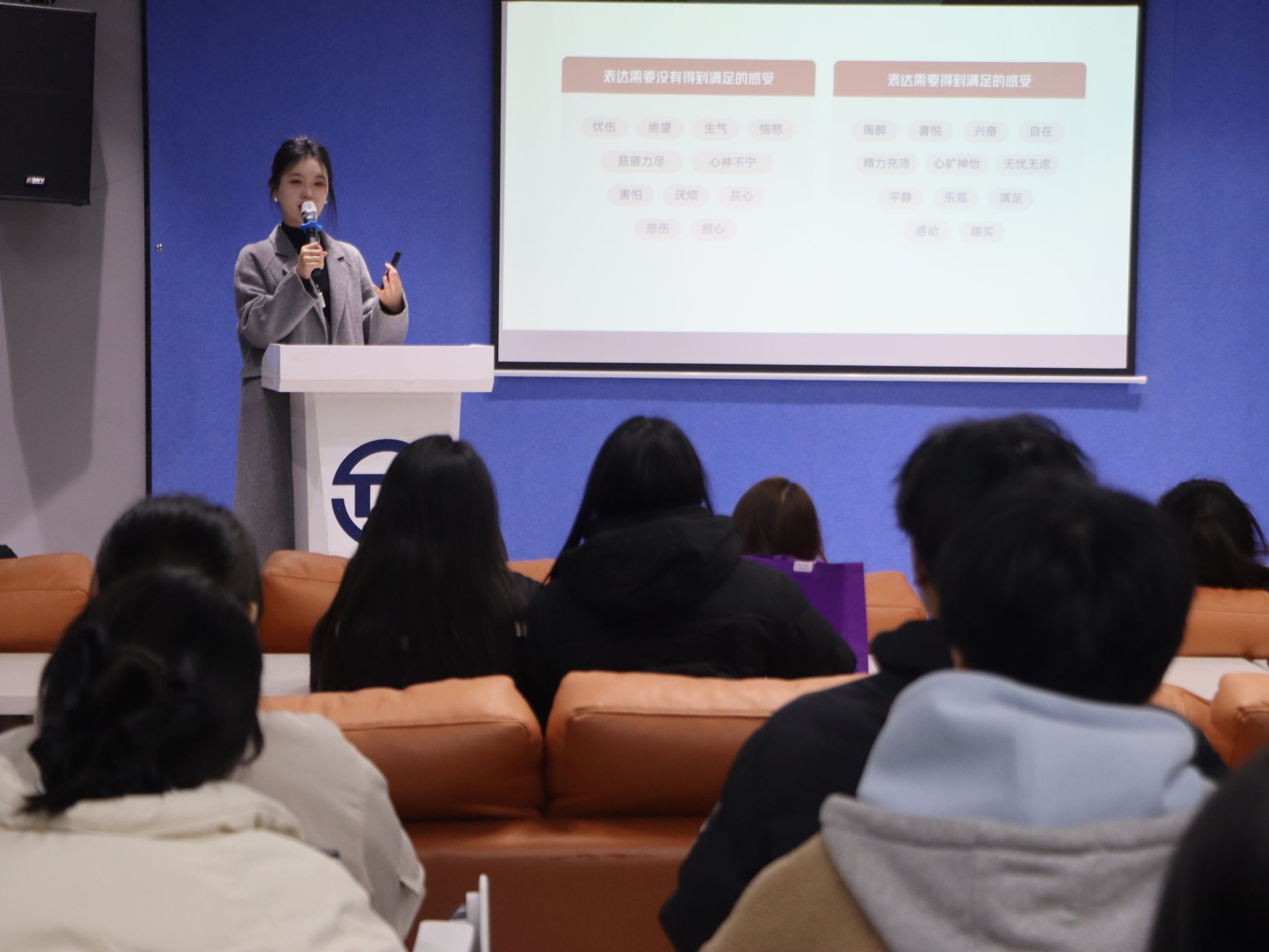 本次活动邀请到微语心理健康志愿服务专项支队的支队长张苏琪作为主讲嘉宾。张苏琪支队长深入浅出地为大家讲解了心理健康的重要性,并通过一系列生动的案例和互动环节,让同学们深入理解如何在学习和生活中维护心理健康。