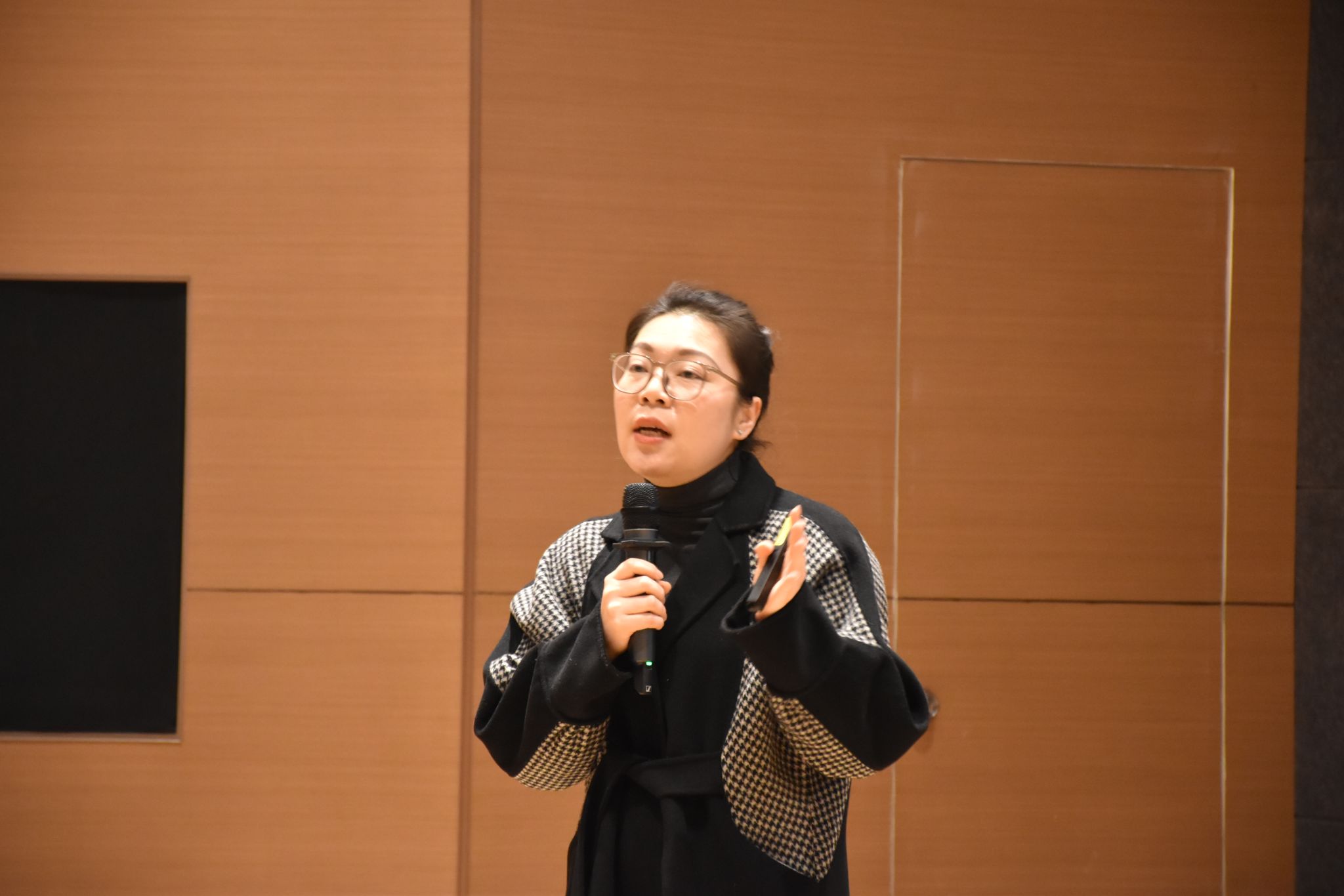 随后,“红丝带”禁毒防艾志愿服务专项支队指导老师段沛言进行了发言,她向同学们介绍了支队成立的意义,说道:“我们成立‘红丝带’禁毒防艾志愿服务专项支队,就是希望能汇聚大家的力量,在校园中,在社会的各个角落,筑起一道坚固的防线。”同时也向禁毒防艾事业表达了殷切希望:“我们还要关注那些特殊群体,比如那些可能因为家庭环境或者心理问题而更容易陷入毒品和艾滋病风险的同学,给予他们更多的关爱与帮助。我相信,只要我们齐心协力,红丝带’就一定能够飘扬在校园的每一个角落,成为禁毒防艾的鲜明旗帜。同学们,让我们携手共进,用我们的行动去唤醒更多人的意识,用我们的努力去改变社会的认知,为创造一个无毒无艾的美好明天而不懈奋斗!”