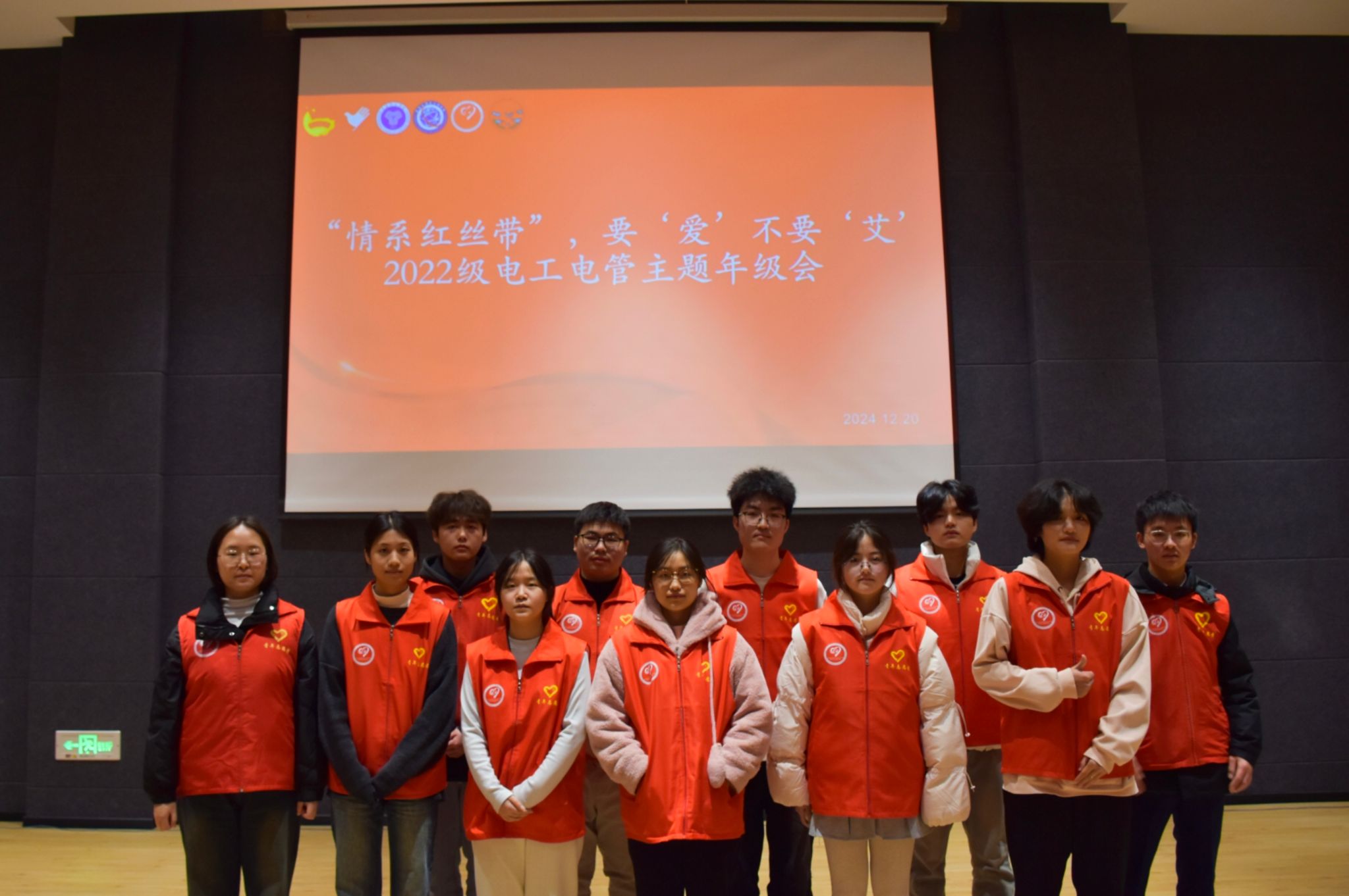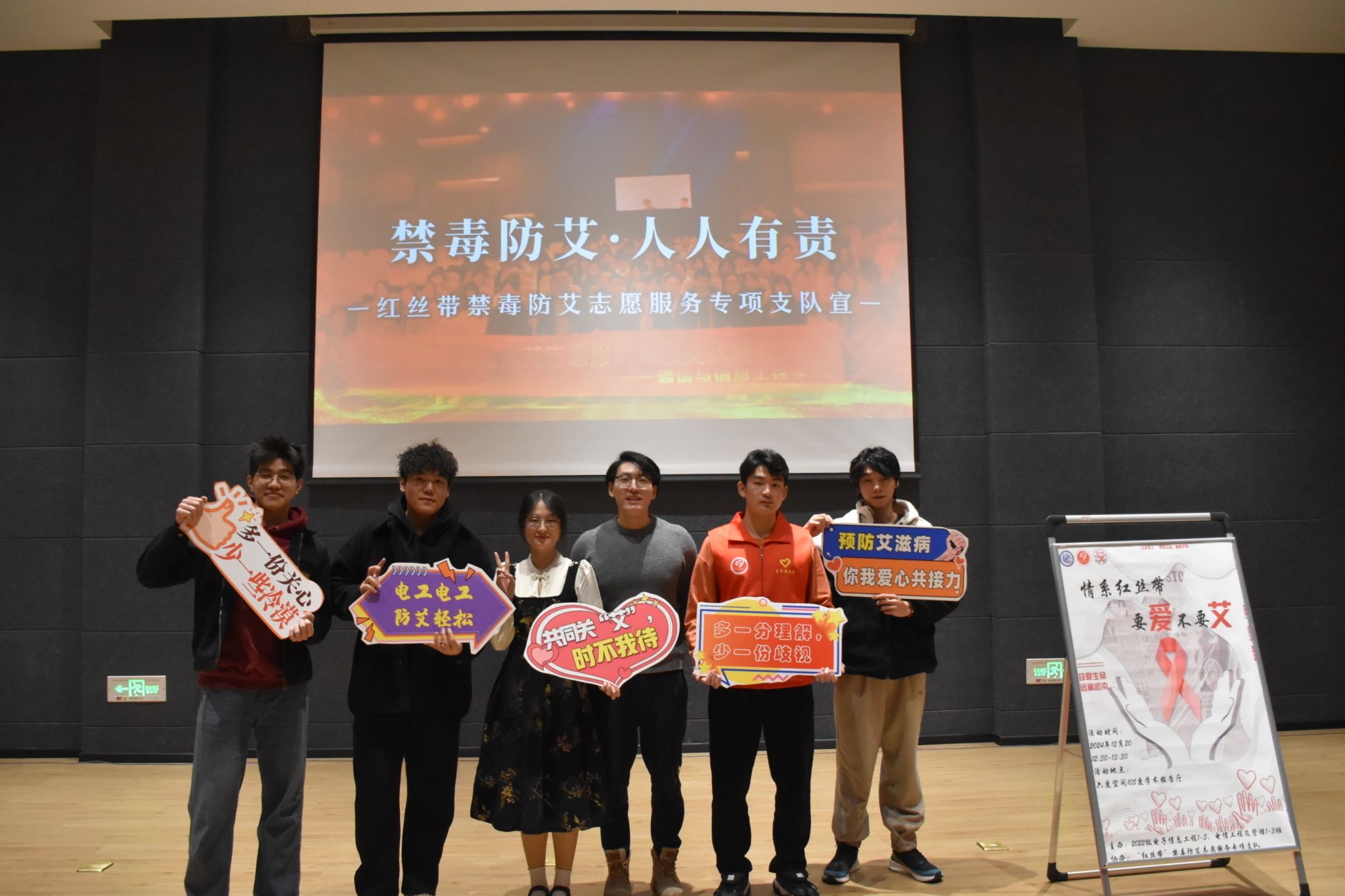 2024 年 12 月 20 日,“红丝带”禁毒防艾志愿服务专项支队协同通信与信息工程学院2022级电信工程及管理,电子信息工程年级于六度空间105℃学术报告厅召开了一场意义非凡的禁毒防艾年级会。会议融入禁毒防艾重要宣讲内容,为年级发展注入新动力,为同学们的成长明晰方向。出席本次会议的有合川区疾控中心黄爽老师,“红丝带”禁毒防艾志愿服务专项支队指导老师段沛言,通信与信息工程学院2022级电工、电管专业辅导员梁杰超以及通信与信息工程学院的同学们。
