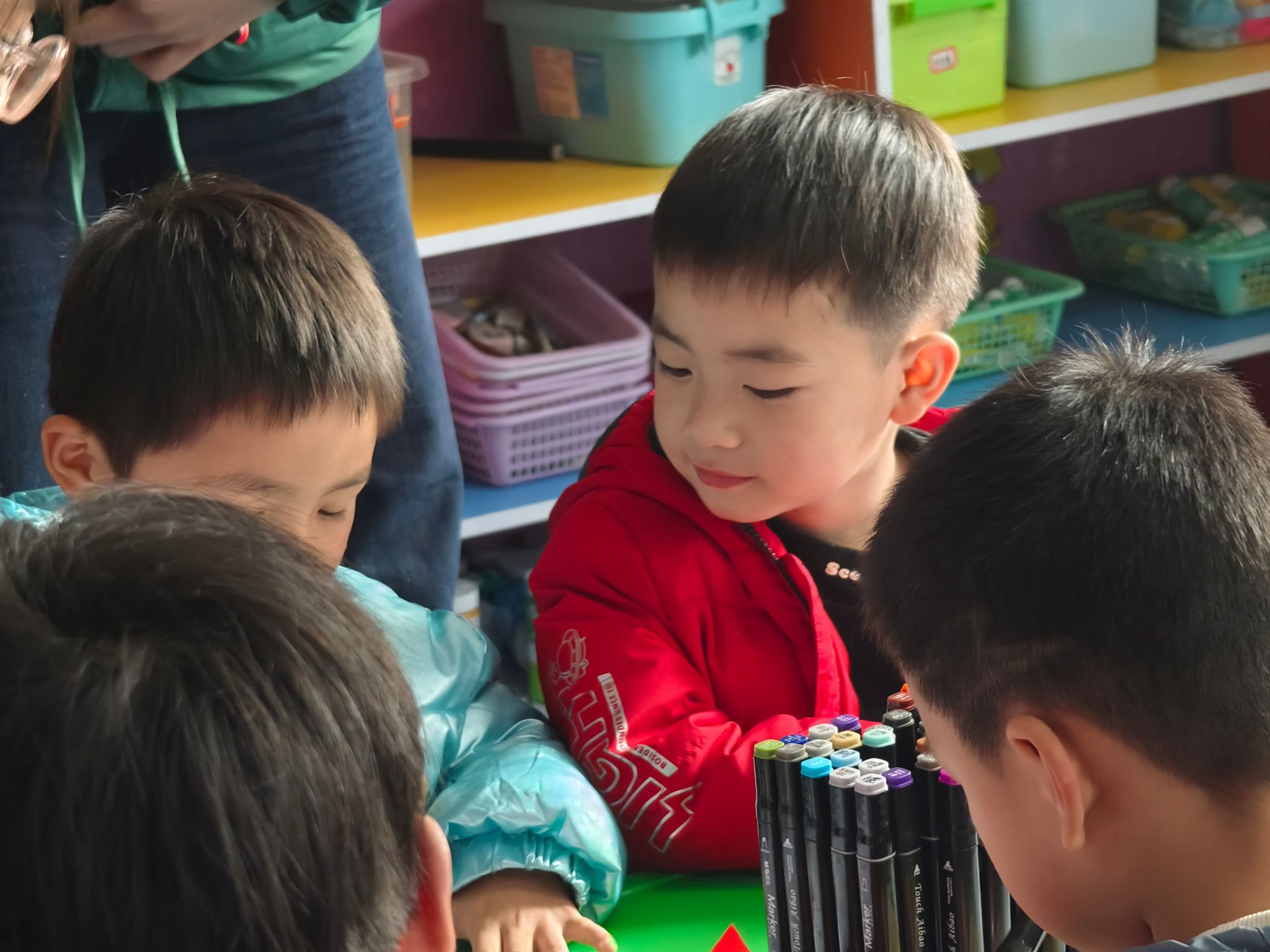 绘画结束后,小朋友踊跃地向志愿者分享着自己的画作,画国旗的小朋友高高举起自己的作品,眼中闪烁着光芒,激动地说道:“这是我们中国的国旗,它叫五星红旗!”画高铁的小朋友也不甘示弱,指着自己的画作兴奋地分享:“高铁跑得可快啦,能带着大家去好多地方!”志愿者们认真倾听,不时给予肯定与鼓励,现场欢声笑语不断。