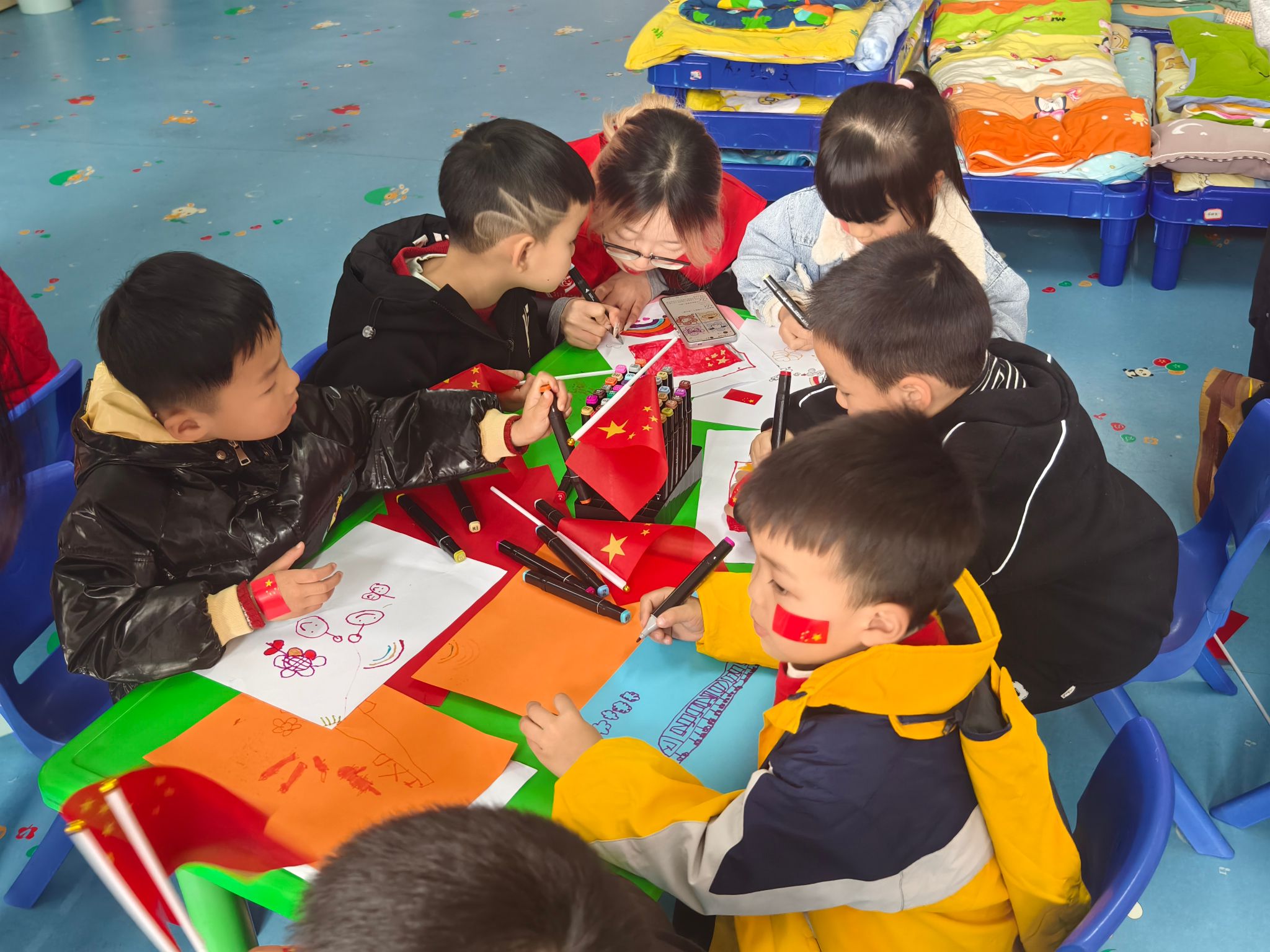为进一步激发小朋友们对强国的思考与想象,活动特别设置了“我的强国梦”绘画环节。小朋友们被分成若干小组,在志愿者的鼓励下,小朋友们描绘心中代表国家发展与爱国情怀的元素。小朋友们热情高涨,认真创作。有的同学精心勾勒国旗,为五颗星星细致上色,一笔一划饱含敬意;有的同学则专注于描绘高铁,流畅的线条展现出高铁的现代感与速度感,彰显对国家科技发展的自豪。绘画期间,大家相互交流,分享对画作的构思,现场气氛热烈。