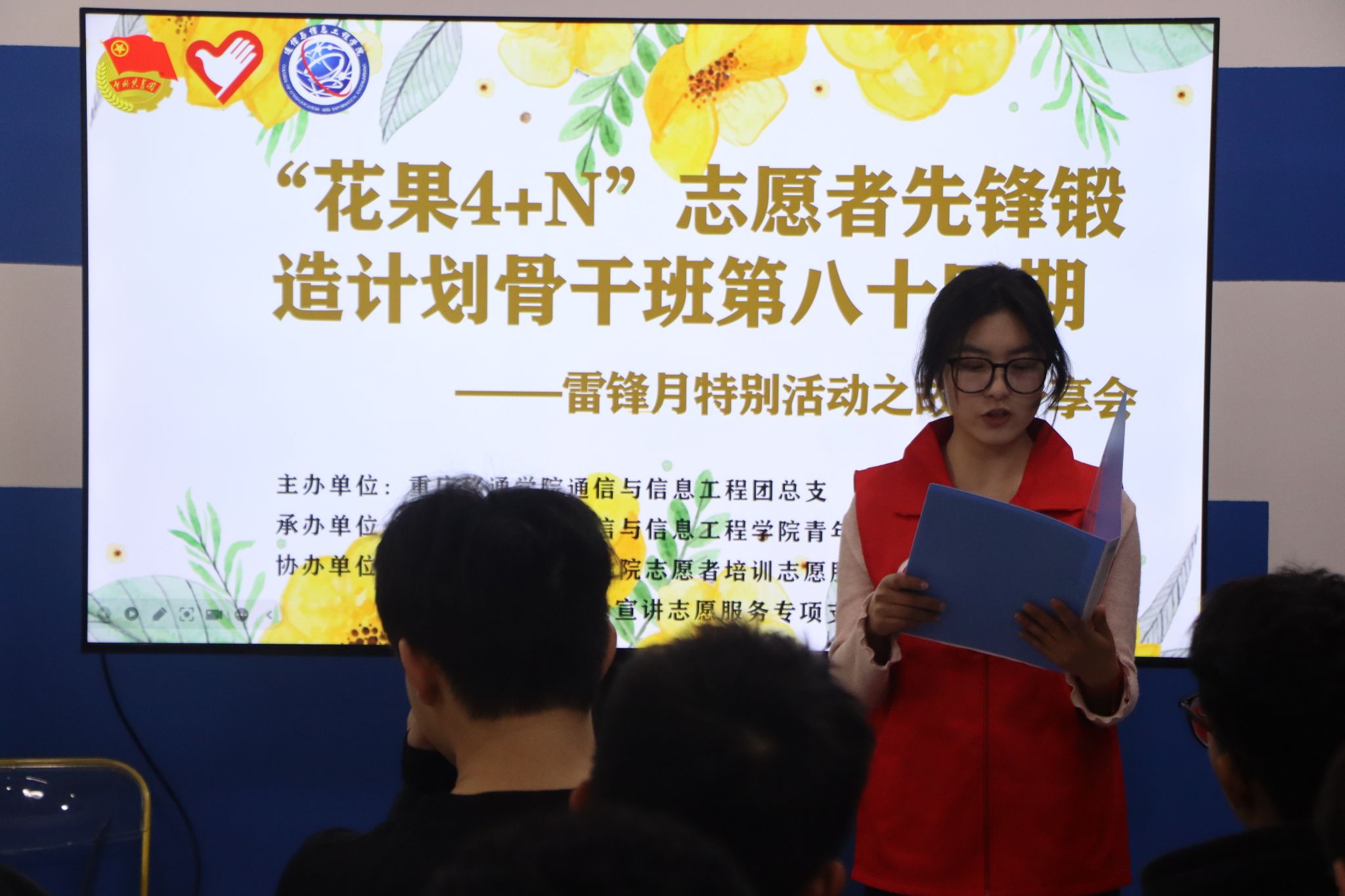 为弘扬雷锋精神,引导大学生志愿者从身边小事践行服务初心,2025年3月19日下午14:00,通信与信息工程学院“伐木累”志愿者培训志愿服务专项支队联合“党青之光”理论宣讲志愿服务专项支队,在天空书院青空朋辈畅谈室共同举办“雷锋精神·故事传承”雷锋月主题活动。花果培训骨干班全体成员及志愿者代表共50余人参与活动。