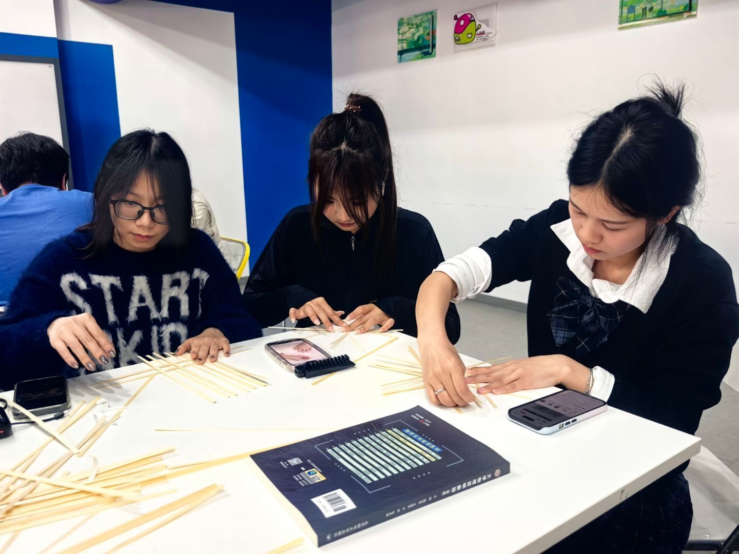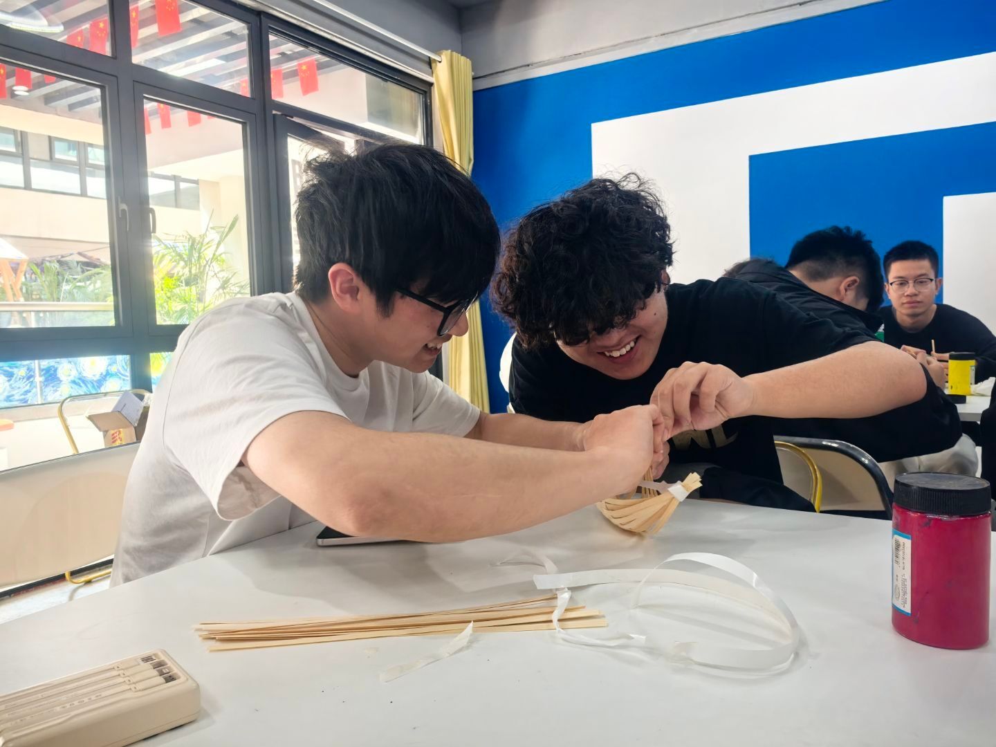 在“绿色手作”环节,同学们在志愿者的配合下亲手利用竹篾编织小物件,体验传统手工艺的魅力。同学们在动手实践中感受到绿色生活的乐趣,更在潜移默化中传承了绿色环保的传统文化,同学们在享受创作乐趣的同时,对绿色环保文化有了更深的认识和体会。
