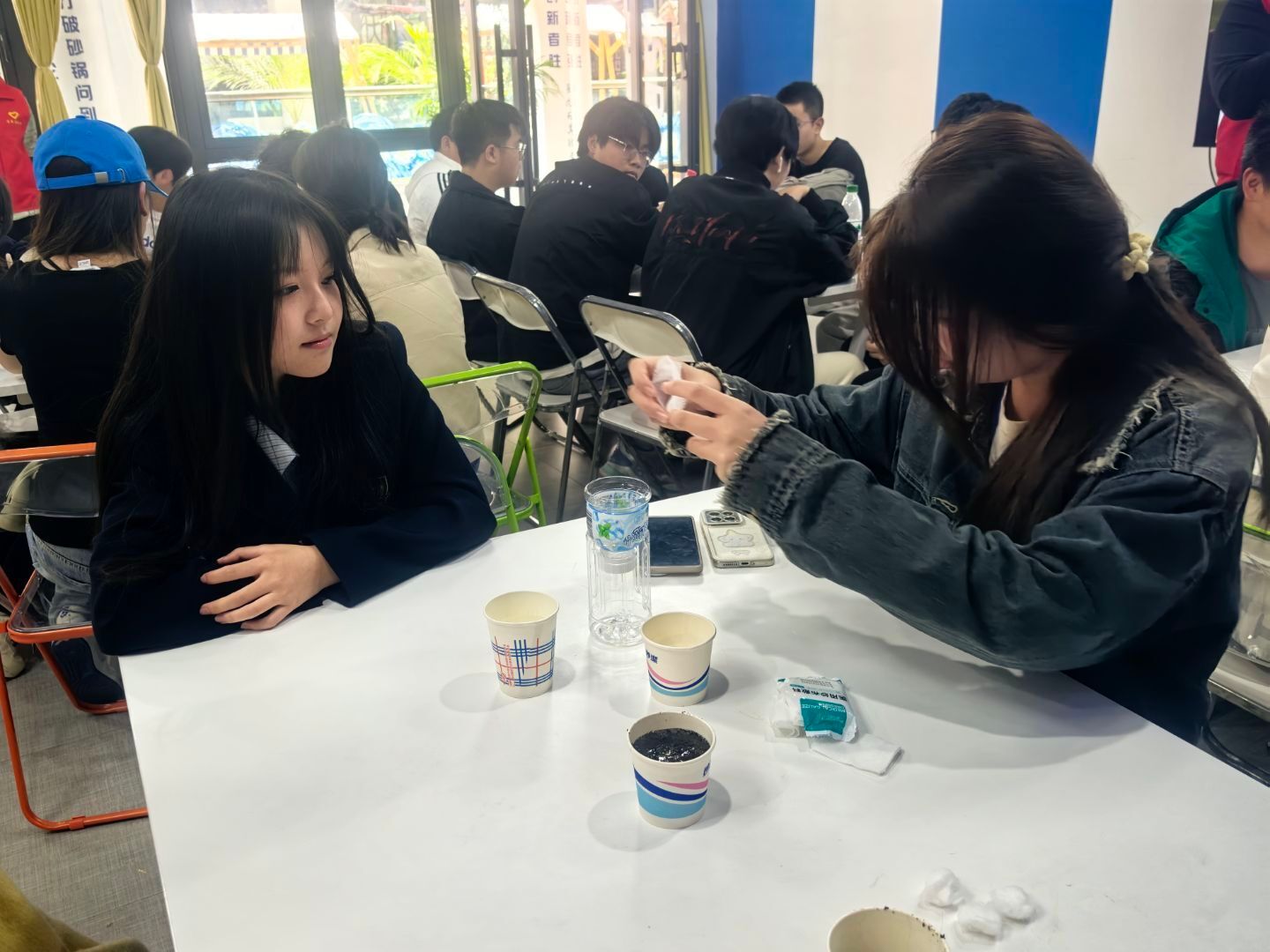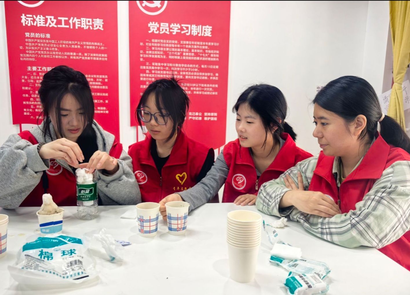 在“清水妙变”环节中,同学们在志愿者的指导下,利用纱布和医用脱脂棉等材料,亲手进行污水过滤小实验。志愿者一边讲解净水原理,一边让同学们亲眼见证污水从浑浊不堪逐渐变得清澈透明。不仅让同学们对水的净化过程有了直观的认识,更在实践中增强了他们对水资源保护的意识。