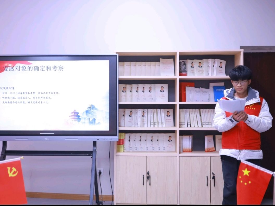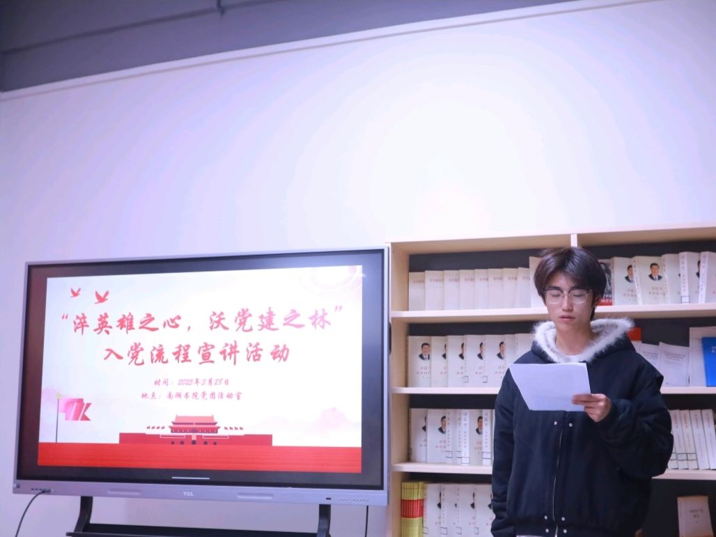 传承红色基因,党心光芒闪耀。“党青之光”理论宣讲志愿服务专项支队宣讲队陈顺同学为同学们科普党的理论知识。在核心环节中,他从递交入党申请书讲起,细致阐述了入党积极分子确定、发展对象考察、预备党员接收及转正等各个关键环节。通过真实案例与详细解读,让复杂的流程变得通俗易懂。在场人员认真聆听,不少人拿出纸笔记录要点,还有人就自身疑惑踊跃提问,现场气氛热烈。此次宣讲有效消除了大家对入党流程的陌生感,增强了向党组织靠拢的决心。
