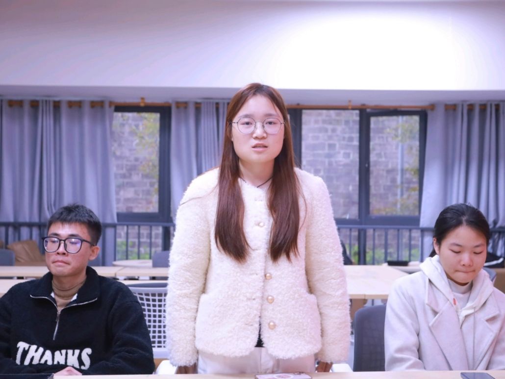 讲到施光礼不惧强敌,驾驶充满危险的米格-15战斗机(此时,美军驾驶P-51野马战斗机,P-51是螺旋桨式战斗机,有低空低速的优势,施光礼驾驶的米格-15战斗机速度快,稍不留神就会撞山,操纵不当又难以瞄准敌军。)追击敌人时,在场同学们皆屏息凝气,担忧着前辈的安危。听到敌机被击落且施光礼前辈并没有受伤时,大家悬着的心终于放下了,随之,掌声此起彼伏回响在党团活动室的空间里。