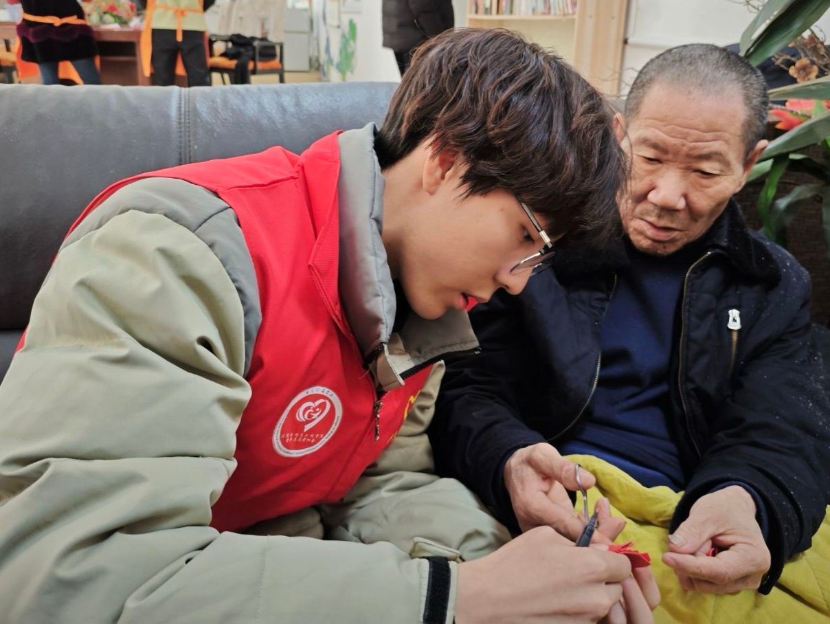 在这场温暖的文化传承之行中,志愿支队满怀敬意围聚在前辈身边,开启了一场跨越岁月的对话。前辈缓缓开口,声音仿若裹挟着时光的尘埃,将剪纸艺术的悠悠过往娓娓道来。从古老节庆里剪纸如何作为祥瑞符号点缀生活,到其在不同地域文化中孕育出的独特风格,每一段故事都是剪纸艺术发展的珍贵注脚。在分享剪纸要领时,前辈眼中光芒闪烁,折叠、运剪、疏密布局,一招一式尽显专注热爱。古老的剪纸艺术在这声声讲述、虔诚聆听与指尖跳跃中,焕发出新的生机,于代际之间搭建起一座坚不可摧的文化桥梁