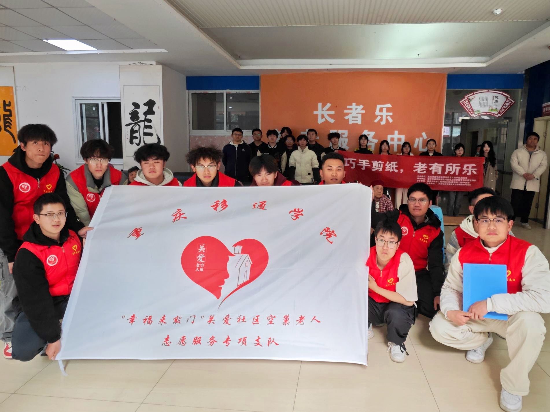 剪纸艺术是中国传统的民间艺术形式之一,为了让老人和同学们感受到剪纸艺术的独特魅力,增强对传统文化的兴趣和认同感。重庆移通学院通信与信息工程学院“幸福来敲门”关爱社区空巢老人志愿服务专项支队,联合2024级通信工程04团支部于2025年4月2日下午,在长者乐养老院开展了以“青耆童梦,暮光春色”之——剪纸风华,青耆筑脉为主题的志愿服务活动。此次活动共计参与人数50人,受益人数248人。