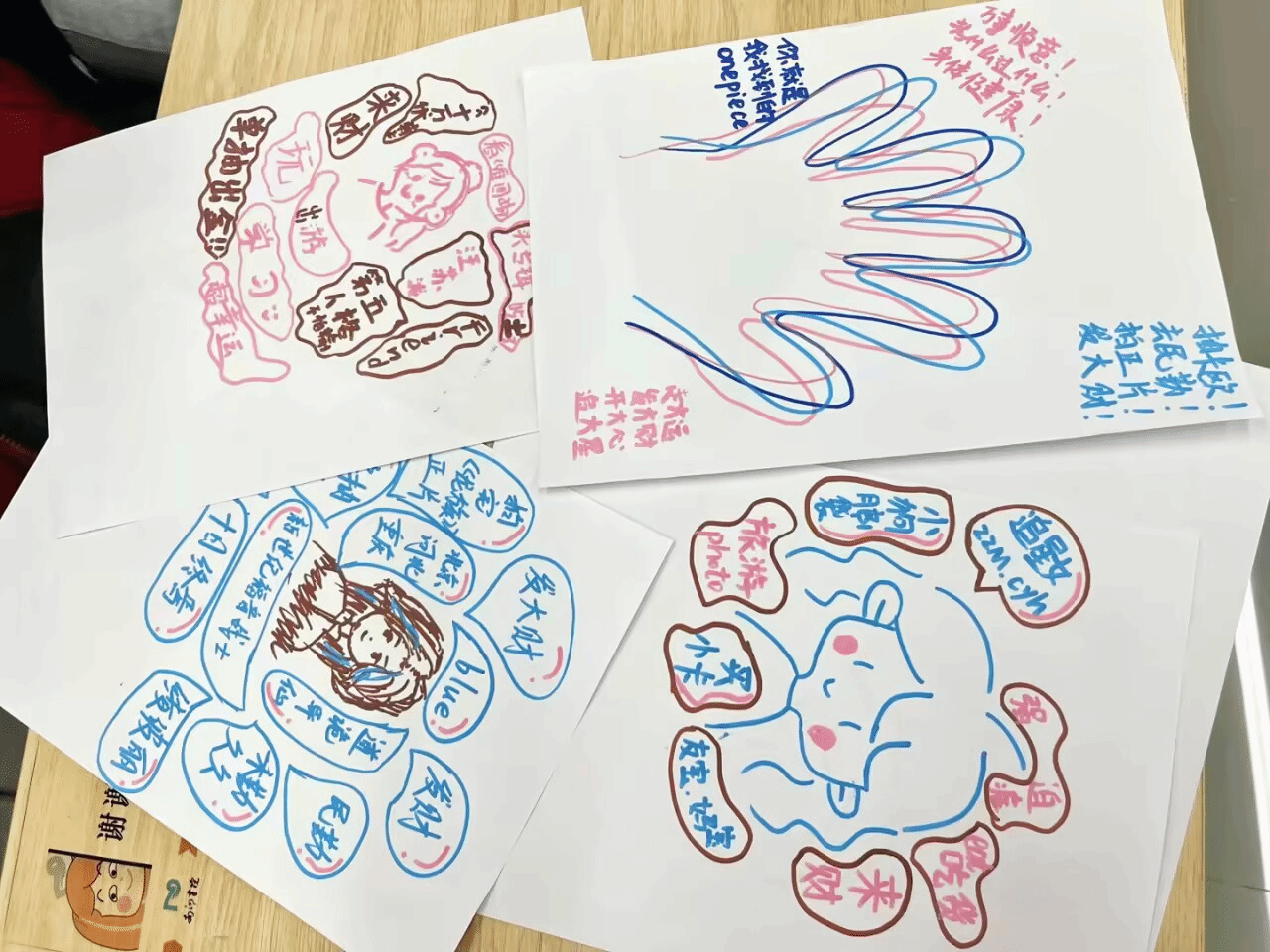 活动以“幸福泡泡”环节拉开序幕。参与者们在A4纸上绘制卡通自画像,并用七彩笔触勾勒泡泡,记录生活中的小确幸——从感恩的瞬间到喜爱的书籍,每一笔都成为情感的载体。2024级学生张同学分享道:“画下今年吃到家乡美食的回忆时,仿佛重新感受到了那份温暖。”