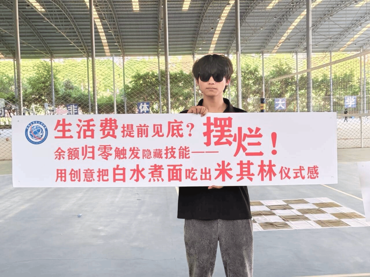 在风雨操场的一侧,“发疯文学墙”成为活动中一道独特的风景线。每班精心挑选出5 - 6名同学,他们从众多网络热梗和自创的发疯语录中,精心挑选出最具特色的语句。随后,同学们用尼龙绳将写有语录的卡片细心穿好,整齐地挂在排球围栏网上。这些语录或幽默诙谐,让人忍俊不禁。这面墙为同学们提供了一个独特的情绪宣泄与表达窗口,让大家在欢声笑语中释放压力。
