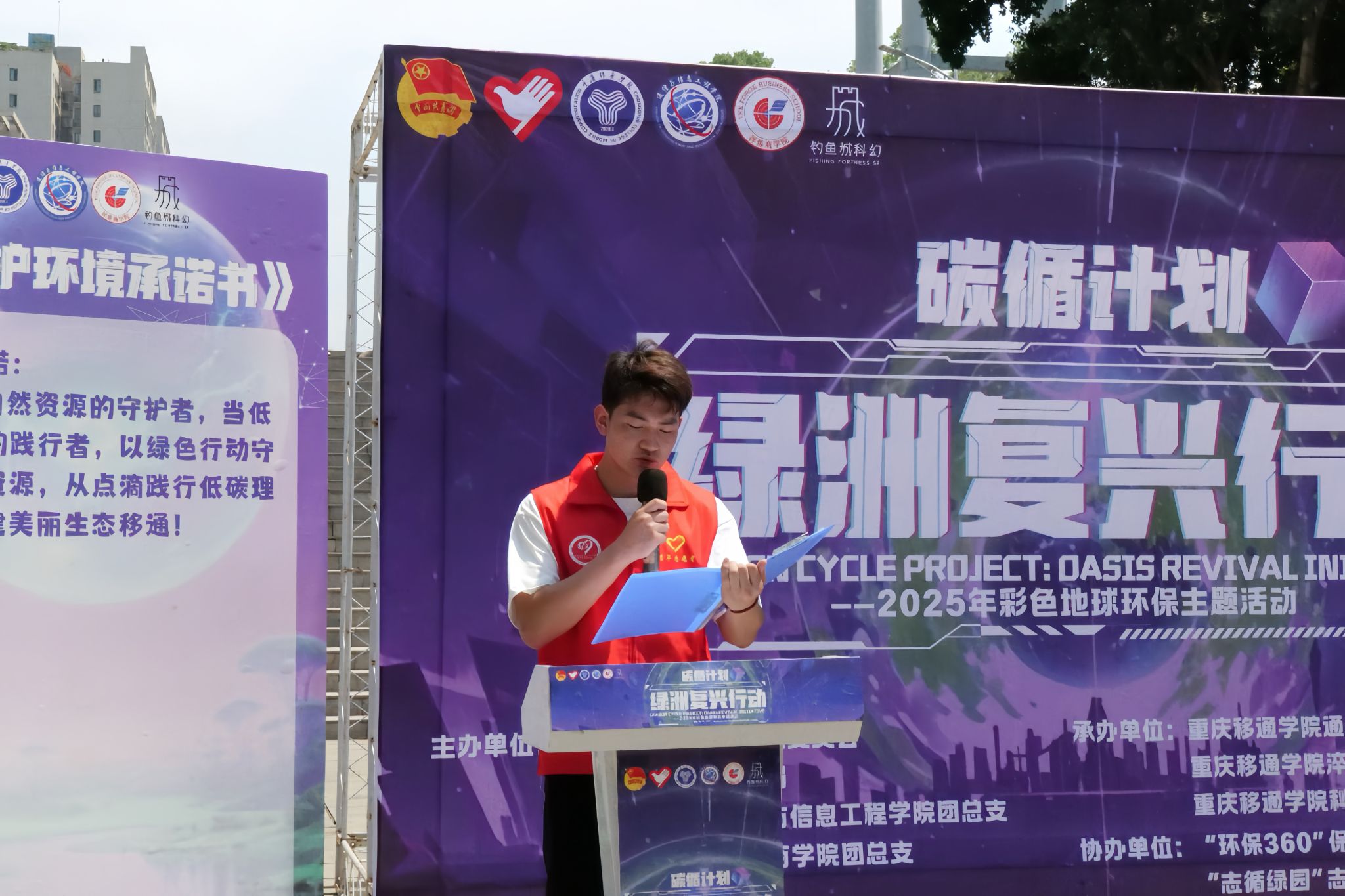 为深入贯彻“节约资源和保护环境”基本国策,践行“绿水青山就是金山银山”理念,4月18日,重庆移通学院通信与信息工程学院青年志愿者协会联合淬炼商学院青年志愿者协会、科幻协会等多方单位,在合川校区黄桷树广场举办“碳循计划:绿洲复兴行动”——彩色地球环保主题活动。合川区生态环境局、学校相关学院领导及200余名师生共同参与,辐射惠及千余人,以实际行动助力绿色低碳发展。
