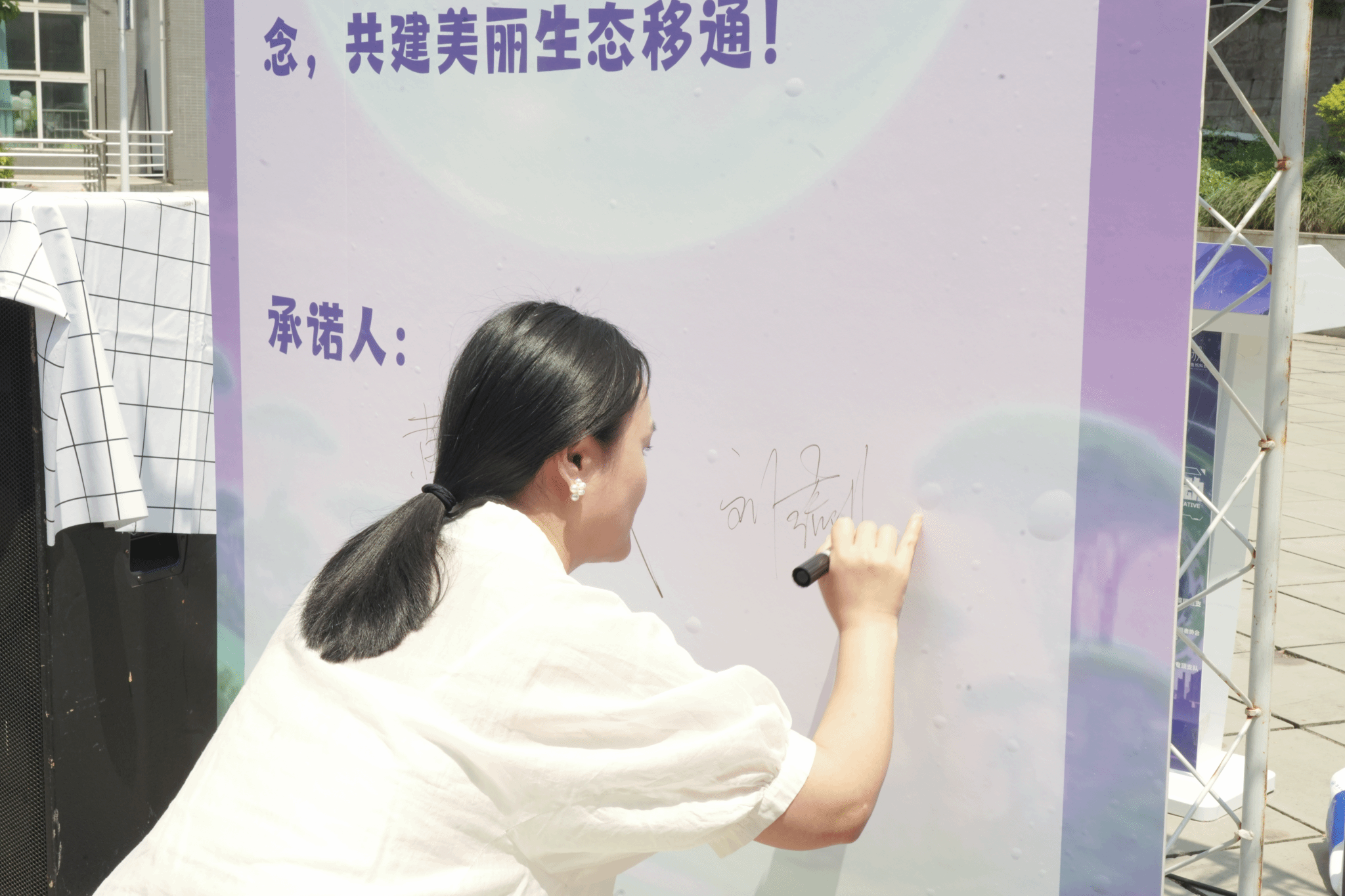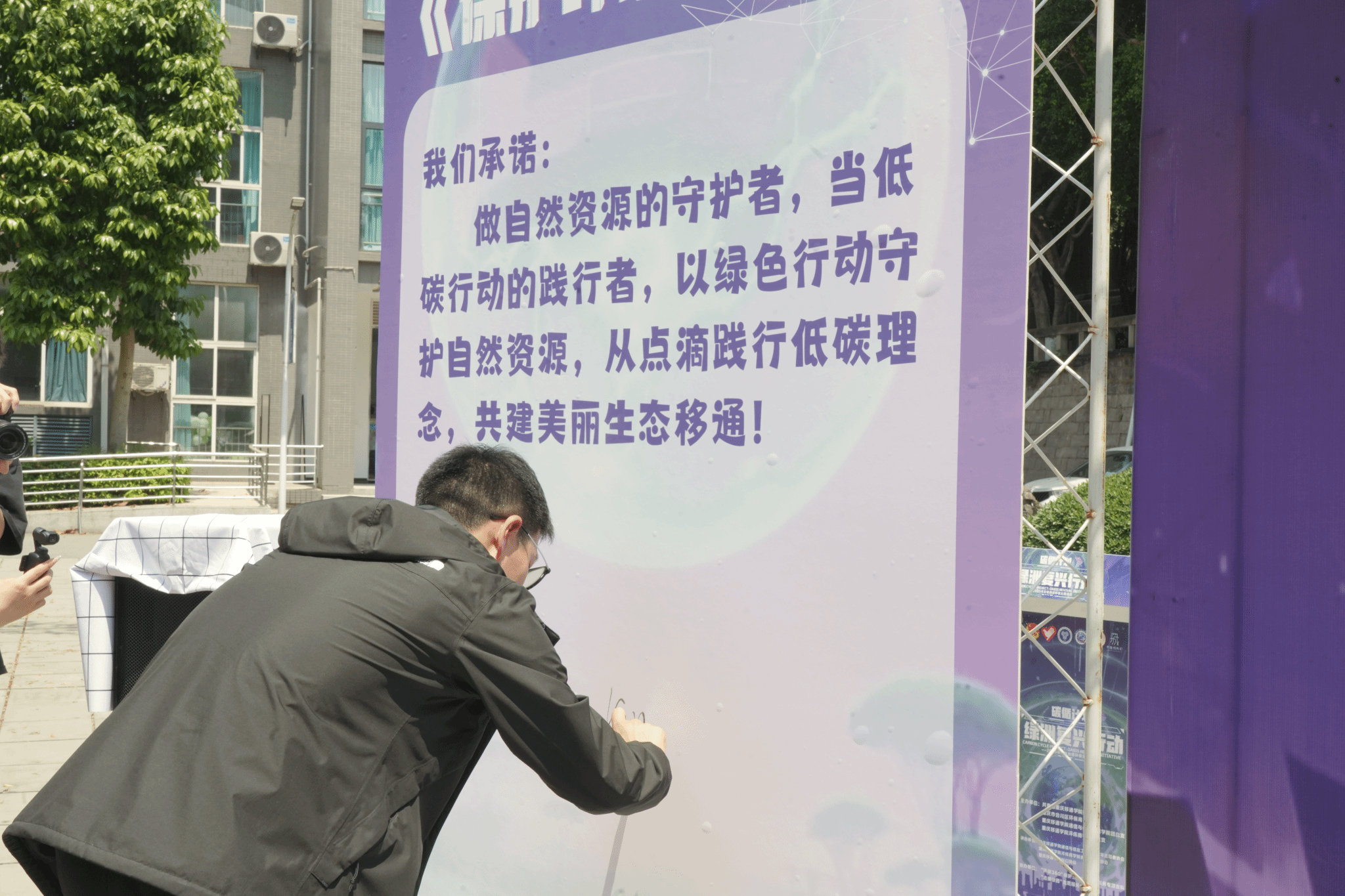 重庆移通学院团委志愿服务中心老师徐一丹在致辞中强调,学校始终致力于环保教育实践,鼓励青年学子成为绿色生活的践行者。学生志愿者代表发出以“碳循计划”为新起点,倡导共同书写属于移通青年的绿色新篇章。随后,合川区生态环境局科长黄迦、校方领导及志愿者代表共同签署《4.22世界地球日环保承诺书》。一笔一划间,是对守护地球家园的庄严承诺,更是对环保事业紧迫性的深刻共识,为活动奠定了责任担当的基调。