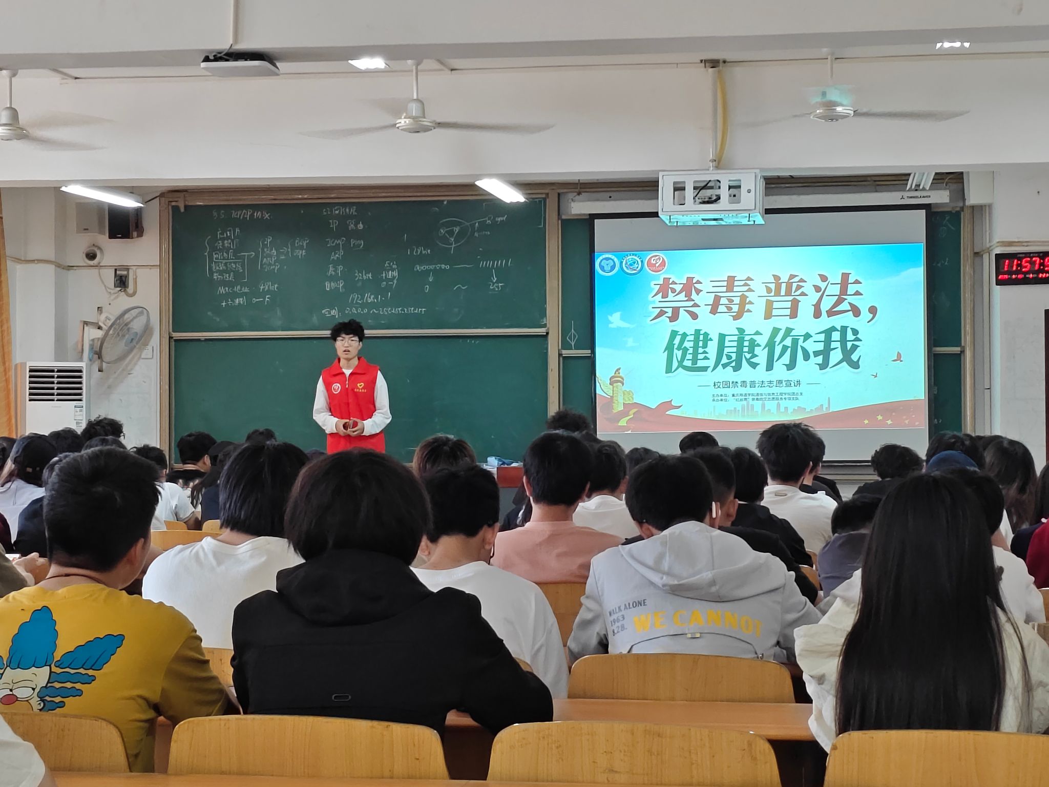 活动期间,志愿者祝榕健同学通过图文并茂的PPT演示,向同学普及了传统与新型毒品的种类、成瘾机制及其对个人健康、家庭幸福和社会稳定的严重危害。在知识讲解之外,宣讲还结合典型毒品犯罪案例分析,以案释法,让同学们深刻认识到毒品对人生轨迹的毁灭性影响。活动现场设有互动问答环节,参与同学踊跃发言,积极答题,进一步巩固了所学知识。