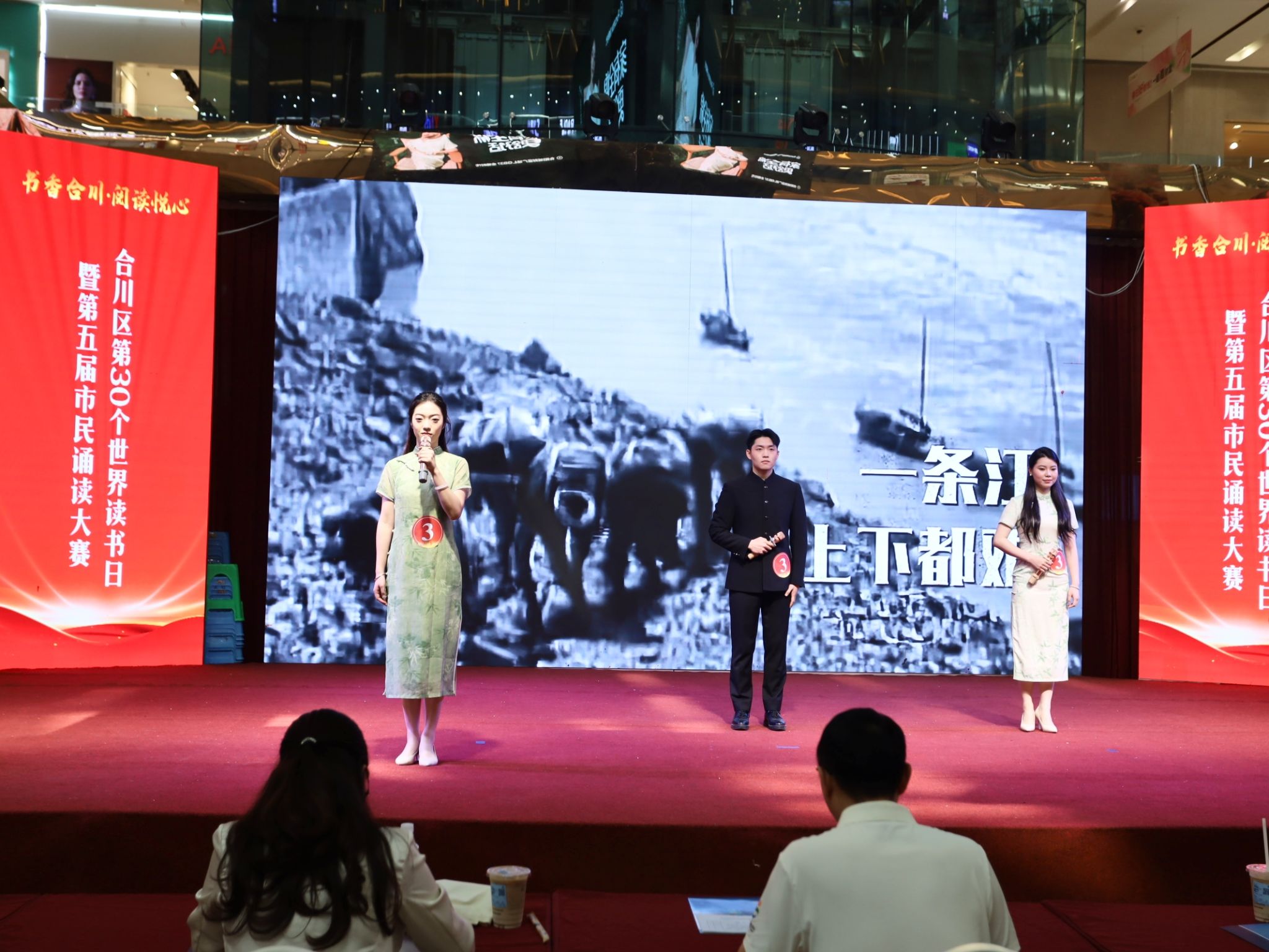 进一步推动合川区的全民阅读氛围,提升市民的文化素养,丰富群众的精神文化生活,2025年4月20日上午,“除尘拾墨”校园图书馆志愿服务专项支队联合合川区图书馆在财富广场举办了“书香合川,阅读悦心”主题的朗读比赛。活动吸引了众多朗读爱好者踊跃参与,在合川区掀起了一阵阅读热潮。