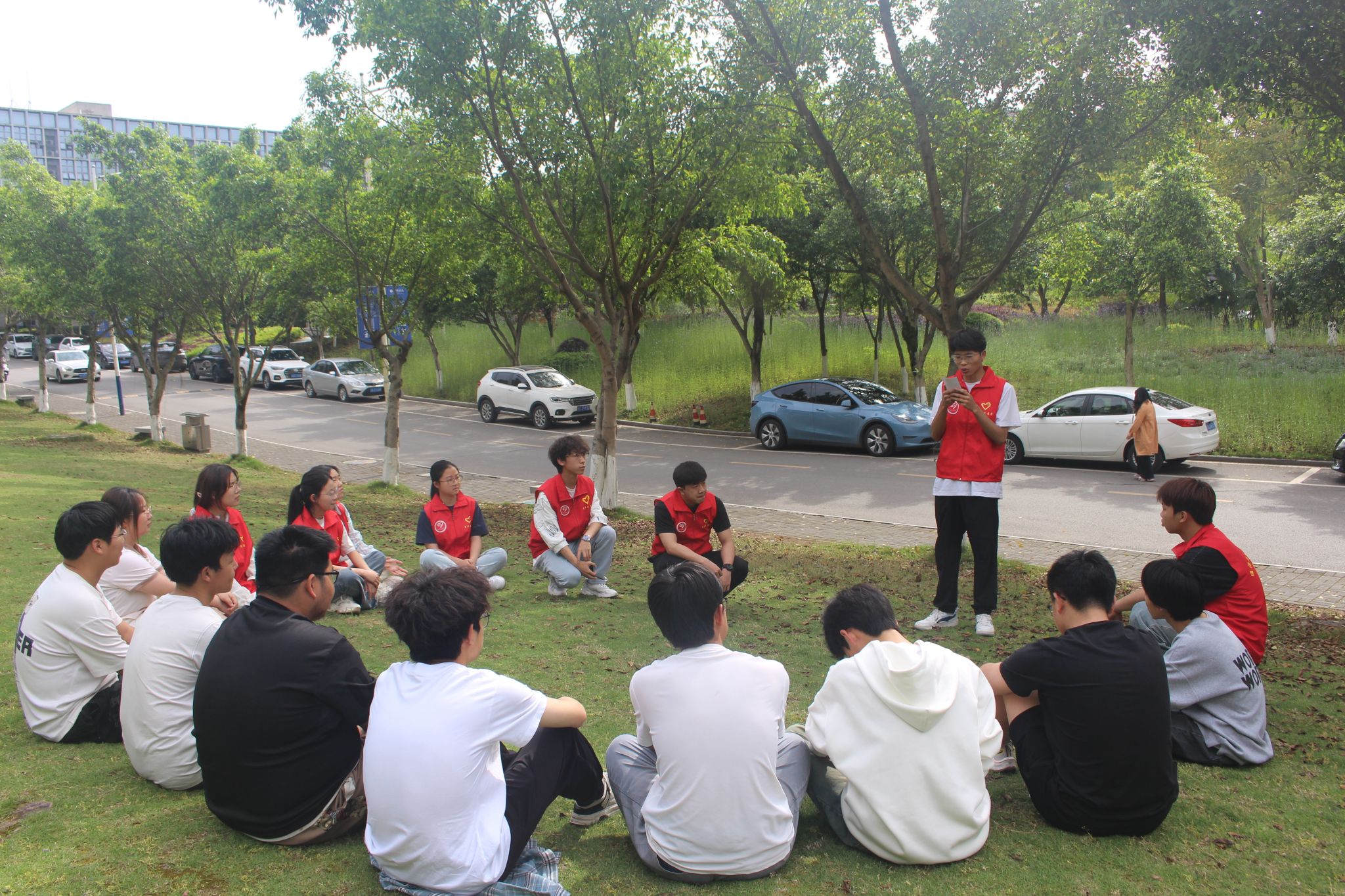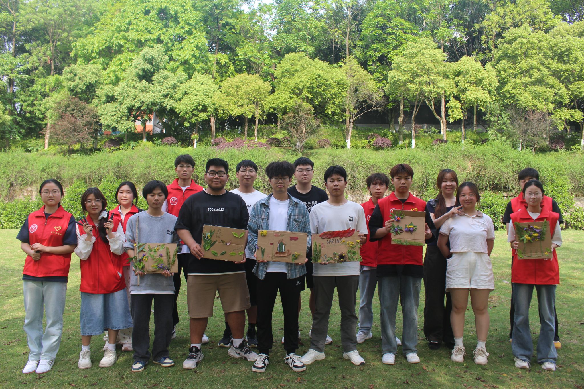 随着春季的到来,校园内万物复苏,通信与信息工程学院“劳育先锋”志愿服务专项支队者支队于4月23日下午16点在 双子湖草坪开展了“拾春・绘春・护春”——自然美学实践志愿活动。活动旨在通过沉浸式自然体验与创意实践,融入劳动教育理念,培养学生的环保意识、创造力和团队协作能力。此次活动共计参与25人,活动共计受益30余人。