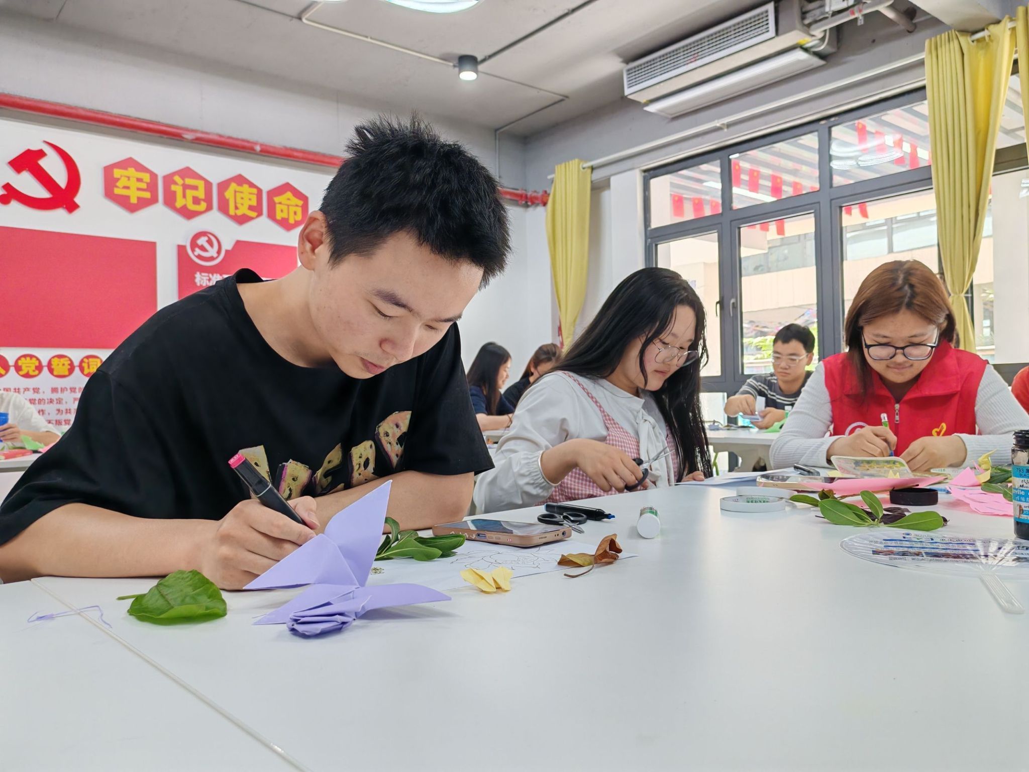 志愿者们为大家准备好彩纸、剪刀、胶水等工具,耐心引导参与者们发挥想象,用心将废旧彩纸剪出各种各样的形状,将它们变成美丽的装饰品,仿佛在赋予彩纸新的生命。制作完成后,大家纷纷表示:“这不仅是一份独特的手工艺术品,更是向他人传递环保理念的载体,鼓励更多人加入环保行动。”