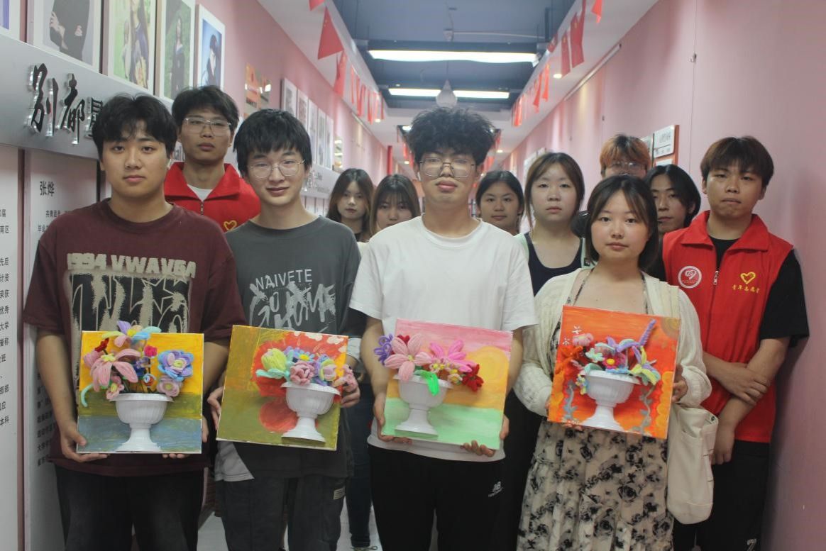 作品完成后,迎来了展示与评选环节。同学们纷纷展示自己的得意之作,这些作品风格各异,有的清新淡雅,有的色彩斑斓,展现了同学们独特的审美和无限的创造力。现场投票评选出优秀作品后,大家集体与作品合影留念,记录下这一美好时刻。