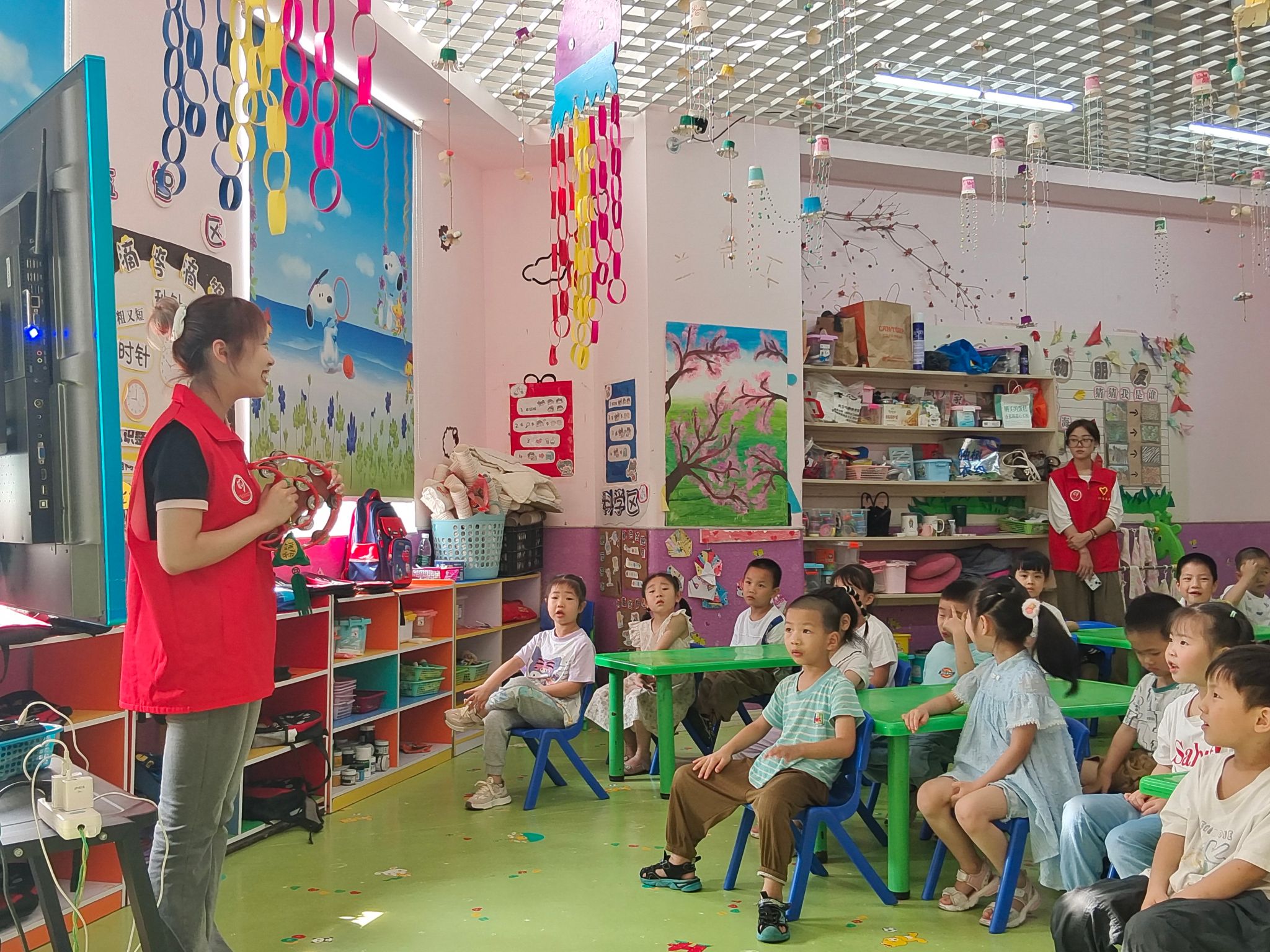 活动伊始,为迅速拉近与小朋友们的距离,志愿者拿出提前准备好的香囊,一下子就吸引了小朋友们的目光。紧接着,志愿者们亲切地询问小朋友们是否知道端午节,小朋友们纷纷举手,用充满童趣的语言分享自己对端午节的零星认知。随后,志愿者们化身“故事小能手”,生动地讲述屈原的故事,从屈原的爱国情怀,到他投江的悲壮,小朋友们听得全神贯注,一双双大眼睛里满是好奇与感动。在讲述过程中,志愿者们还详细介绍了端午节吃粽子、赛龙舟、挂艾草、佩戴香囊等传统习俗,让小朋友们对端午节有了更全面、更深入的认识。